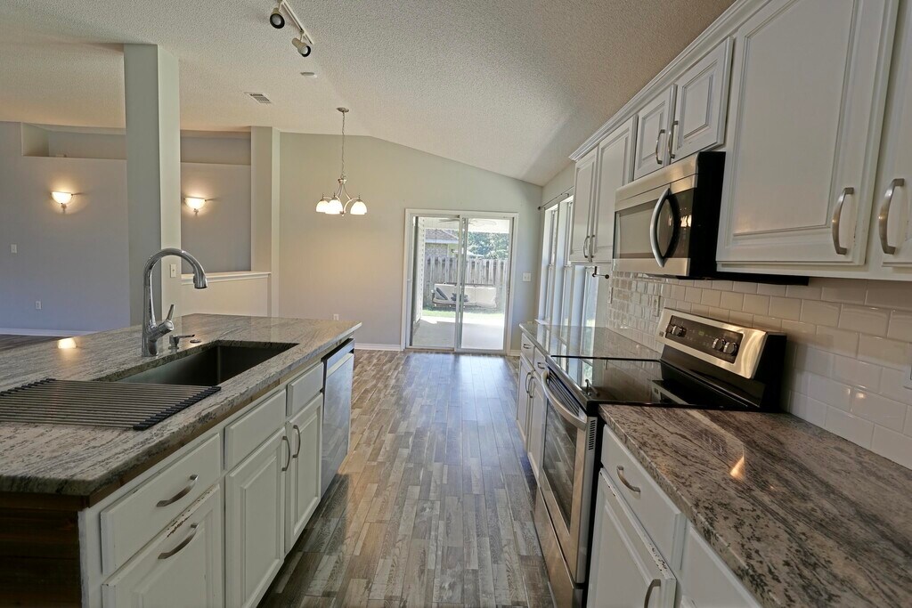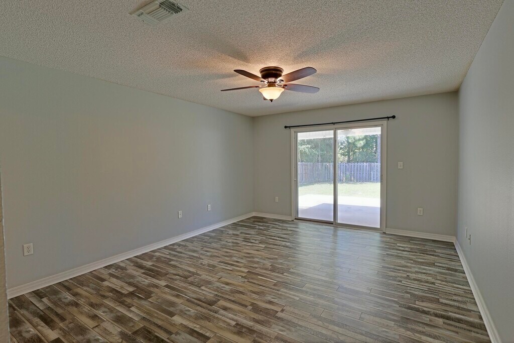 This 4BR/2BA home features high ceilings, open floor plan, and a spacious kitchen with stainless appliances, walk-in pantry, and breakfast bar. The master suite offers patio access, double vanities, soaking tub, and walk-in closet. Set on a fenced lot backing to woods for added privacy, with sidewalks and underground utilities. Walk to Navarre High and the Youth Sports Complex. No smoking inside unit and pets upon approval. 650 min credit score, background check, first month/security deposit due before move-in.