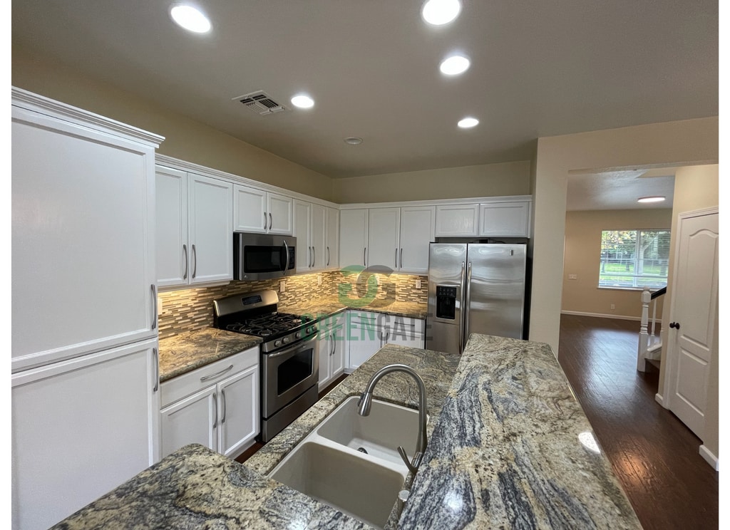 ***Please review rental guidelines at To visit the property, please call our office during regular business hours .*** Welcome to this stunning 5-bedroom, 3-bathroom home located in the vibrant city of Turlock, CA. This 2-story house is equipped with a range of modern amenities including a dishwasher, gas stove, microwave, and a refrigerator. The kitchen boasts granite countertops and adding a touch of elegance to your cooking experience. The house also features a convenient upstairs laundry, a 2-car garage, and a guest suite downstairs for your visitors' comfort. The dark wood floors and upgraded fixtures throughout home add a touch of sophistication to the overall aesthetic of the house. The home comes with central heating and air to ensure your comfort in all seasons. The property also includes a covered patio, perfect for outdoor relaxation. The landscaping is included, adding to the curb appeal without the maintenance hassle. As well as pest service is included for your peace of mind. The location is ideal, with easy access to the freeway, proximity to schools, and nearby shopping facilities. This home truly offers a blend of comfort, convenience, and style.