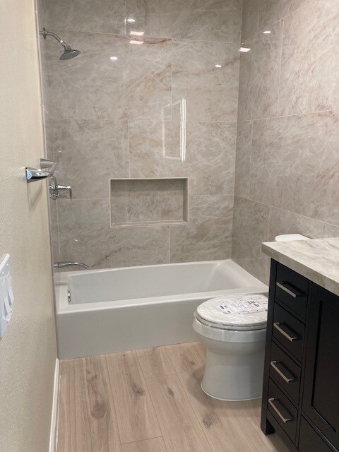 IMMACULATE Condominium 2 bedrooms 2 bathrooms and a Garage. This lovely upper-level home is in the wonderful community of Springtime Condominiums. It is a desirable end unit. It has just undergone a complete remodel with no expense spared. The pleasant paintwork make it look light and bright. It has stainless steel appliances, comprising of Range, Microwave, Garbage Disposal, Dishwasher, Refrigerator, also comes with a stackable washer and dryer in unit. Easy care wood look alike waterproof flooring installed throughout. The spacious living room is bathed in natural light from a multitude of windows and has a high pitched ceiling. New LED lighting with high efficient smart fan help to keep utility bills lower. Plantation shutters installed on all windows. Both bedrooms also come with fans. The primary bedroom has a ensuite bathroom. Large format tiles have been used for both bathrooms giving a luxurious feel. You're going to experience "Resort-Style-Living" enjoying the community's lush greenbelts, sparkling pool, and soothing spa that is just steps from the unit. Great location close to school, parks, grocery stores, shopping plaza, great restaurants, MetroLink station, and the 118 freeway. Water and Trash are paid for you. Responsible landlord who takes pride in looking after his tenants. Kindly call anytime, would love the opportunity to show you this lovely home. No smoking please.