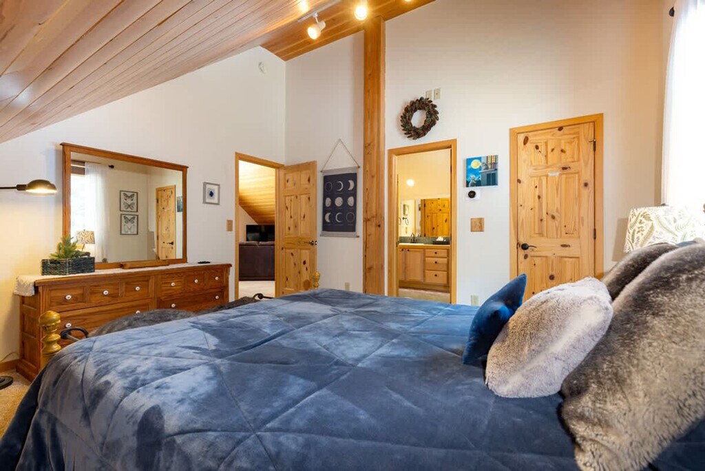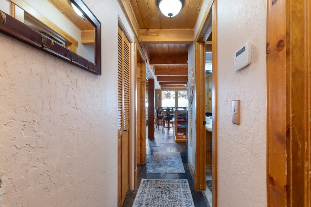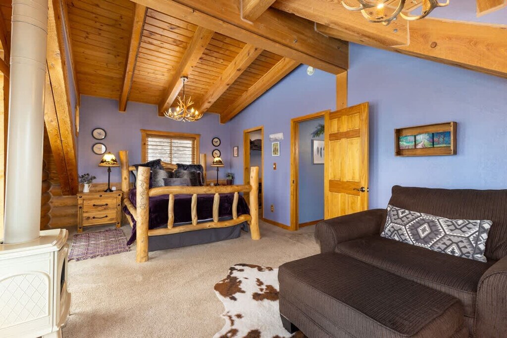 Escape to this stunning, pet-friendly log cabin in Breckenridge and feel at home in this multi-level home that blends rustic charm with modern luxury. Nestled in a serene, wooded landscape, this home is the perfect high-alpine retreat for families or groups seeking adventure and relaxation near the slopes. This home offers a fully equipped kitchen with granite countertops, perfect for preparing delicious meals. Relax in the cozy living area by the wood-burning stove while gazing out at the snowy scenery through large windows. Enjoy the private deck with an outdoor hot tub, surrounded by the peaceful forest. The home features multiple unique bedrooms and several bathrooms, including one with a distinctive copper-colored tub, ensuring ample space and privacy. This property is pet-friendly. Nestled in a quiet Blue River neighborhood, this cabin offers a peaceful escape while still being conveniently close to Breckenridge's vibrant scene. You're just a scenic 20-minute drive from the heart of Breckenridge, where you'll find a wide array of dining options, unique shops, and world-class skiing. For those who love the outdoors, the property is steps away from North Star Mountain, offering breathtaking views of the majestic Rocky Mountains. 4WD or AWD is required to access the property for a majority of the year. Quiet hours are observed from 7:00 PM to 7:00 AM. Registration Number: STR21-00878 [SI]