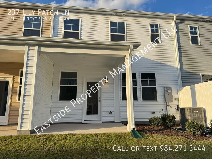 Contemporary two-story townhouse featuring a seamless open-concept layout. On the main floor, the Great Room connects effortlessly to the dining area and chef-inspired kitchen, which boasts sleek finishes and ample workspace. Step outside onto a private patio, ideal for enjoying fresh air or hosting casual gatherings. Upstairs, the layout continues to impress with two secondary bedrooms and a spacious owner's suite complete with a walk-in closet and full private bath. Just minutes away is the downtown Smithfield offers boutique shopping, dining, and cultural attractions rich in local history. Downtown Clayton, less than 10 miles away, features charming breweries, fitness studios, and more. For commuters, Finley Landing provides quick access to major employers such as Amazon, Grifols Therapeutics, and Novo Nordisk, all within an 11-minute drive. Tenants responsible for utilities & grass (for single family houses) & landlord pays for HOA. No smoking allowed. Utilities Not Included In Rent