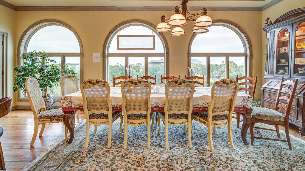Welcome to Mull Cottage, a stunning second-row home located at 278 Pioneer Loop, offering spectacular views from the large third-floor great room. This spacious property features six bedrooms, six bathrooms, two half baths, and two kitchens, providing ample space for up to 20 guests. Enjoy the luxury of two whirlpool tubs, large sun decks, and a screened porch on the third floor. The downstairs den includes a pool table, and the home is equipped with wireless Internet, a gas grill, four flat-screen TVs, DVDs, an outside shower, and a two-car garage. This home rents from Friday to Friday during the peak summer season. Mull Cottage is designed with comfort and convenience in mind, featuring a gourmet kitchen and dining area in the great room, as well as a second kitchen downstairs. The property includes a king master bedroom, three king guest rooms, a queen guest room with bunk beds, and a queen guest room with a queen sleeper sofa, plus additional daybed and trundle. The downstairs living room also offers an additional queen sleeper sofa, daybed, and trundle, ensuring plenty of sleeping arrangements for all guests. For a fee, guests can access the DeBordieu Club amenities, including golf, tennis, and multiple dining options. A temporary club membership can be arranged for $200 a day, although this does not cover individual amenity fees. The property also offers three golf carts for guest use: two 6-seat carts for $600 per week and one 4-seat cart for $500 per week. The maximum number of cars allowed is six, with a $20 fee per vehicle to enter the community. Nestled in the exclusive DeBordieu Colony, a private oceanfront gated community near Pawleys Island, South Carolina, Mull Cottage offers access to a range of amenities. Guests can enjoy miles of beach and tidal creeks, an on-site nature preserve with walking trails and bike paths, and a delightful year-round climate. The community is conveniently located between Charleston and Myrtle Beach, making it an ideal destination for exploring the Lowcountry lifestyle. Please adhere to the no smoking and no pet policy set forth by the owner. The property is equipped with a security camera located at the front door for your safety. South Carolina law provides vacation rental guests with a reasonable expectation of privacy, and security cameras are prohibited inside the home or in private outdoor areas such as pools and hot tubs. Enhanced cleaning, disinfection, and sanitization protocols are in place to ensure the wellbeing and safety of our guests. Our properties are cleaned and sanitized by professionally trained and equipped housekeeper employees, following CDC housekeeping protocols and using approved disinfectants. [SI]