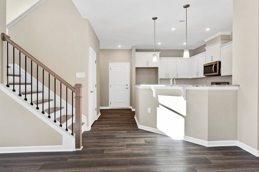 Gorgeous townhome for rent within walking distance to Fuquay-Varina's historic Main Street. Kitchen is open to the spacious living room and dining area. Upstairs you’ll find a multi-purpose loft, and luxurious Owner's suite with large shower, massive walk-in closet in and an over-sized laundry room with washer and dryer. Home also features two additional secondary bedrooms. Enjoy a view of the trees and proximity to playground and paved walking trail. End unit townhome also features a 2-car rear-load garage. Pets Negotiable.