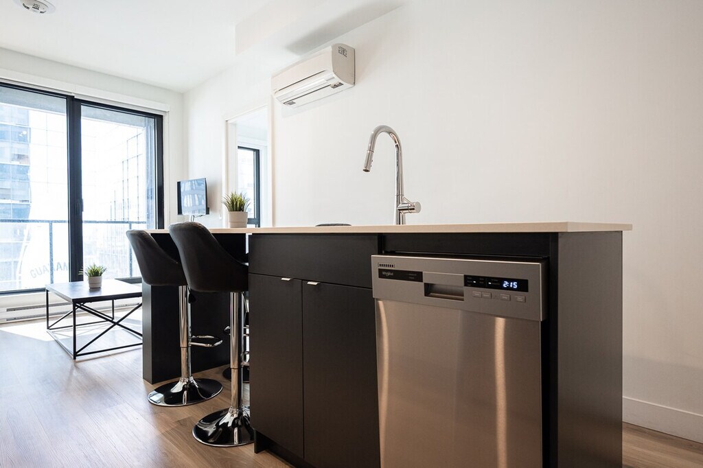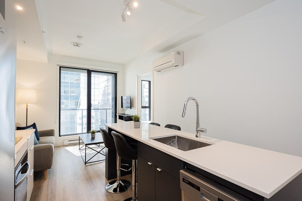 The advertised rate of C$3,675/month is the lowest available price, based on a 1 month(s) stay with a move-in date of April 20, 2026. Rates vary depending on the duration of stay, season, and other parameters. For exact pricing and additional pricing components, please visit our website and enter your desired move-in and move-out dates. The rate is applicable when billed upfront; it can be higher if billed in multiple payments. Located in Montreal's bustling downtown core, adjacent to the Bell Centre, feel at home in this property that epitomizes luxury and practicality, setting a new benchmark for urban living. This 1-bedroom apartment with 1 bathroom is especially tailored for young professionals, newcomers, and students. This new condo is very well located and offers access to shared workspaces, a conference room, a complete gym, a swimming pool, a sauna, a spa, a yoga room, a games room, and a cinema. There is also a terrace on the 4th floor and a workspace with a view. Indoor parking with in/out privileges is available for an additional fee depending on the length of your stay. If you need parking, please inquire in advance to check availability. Cleaning services, including bi-weekly or monthly options, are available for an extra charge; please contact us for more information. Situated mere steps away, residents enjoy easy access to the attractions of the Golden Square Mile and the historic charm of Old Montreal. The Lucien-L’Allier Metro Station is a stone’s throw away, connecting residents to various parts of the city. The Bell Centre, home of the Montreal Canadiens hockey team, is a hub of excitement. No parties of any kind or loud noises that can alter the harmony of residents are allowed. Smoking (including cannabis/cigarettes or any kind) is prohibited inside the apartment, on the balcony, or in the building. Please care for your home away from home. [SI]
