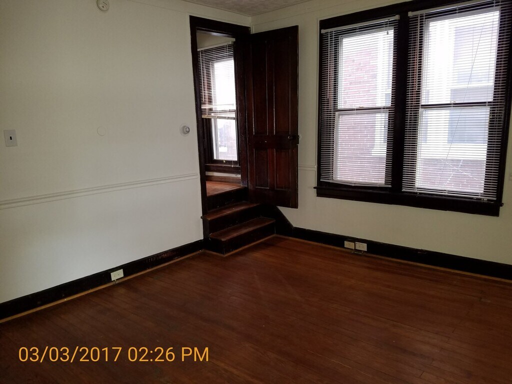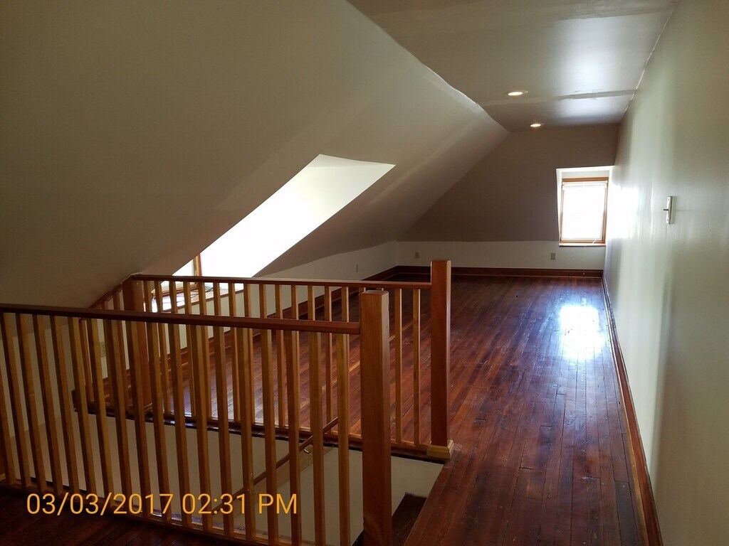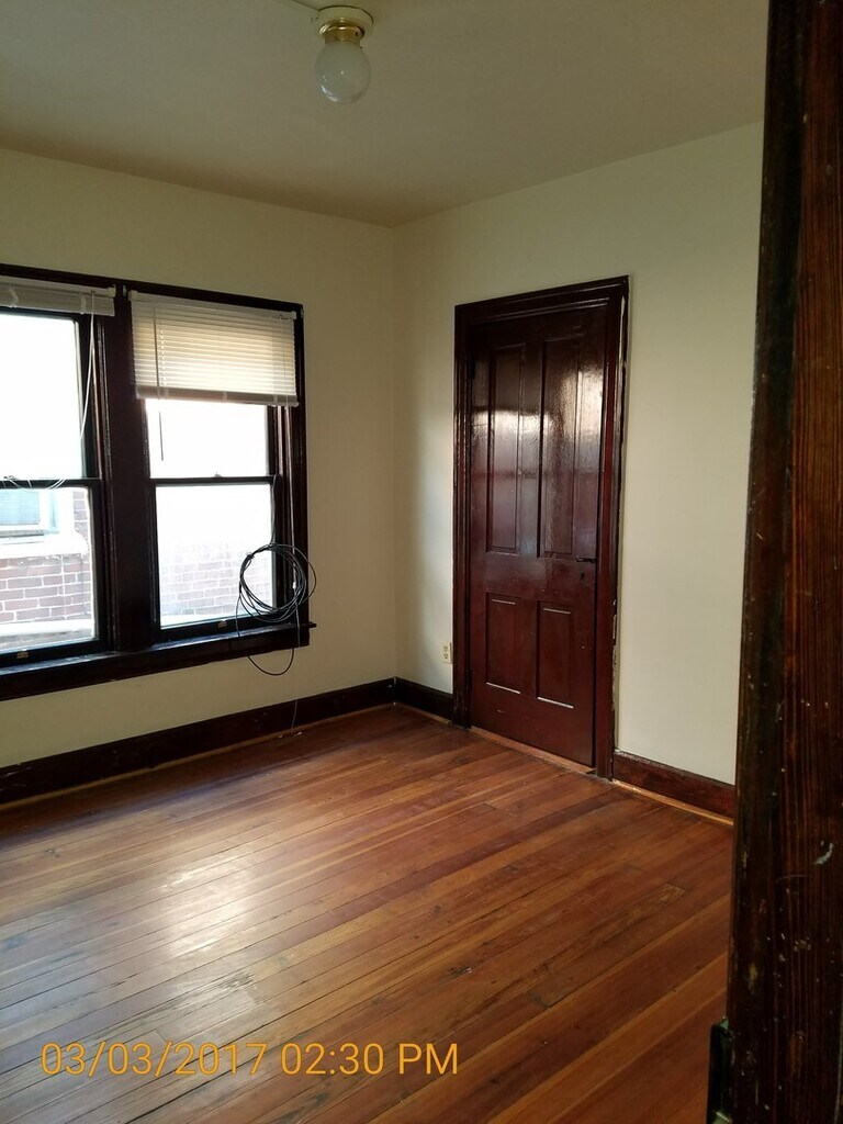 huge 4 bedroom, 1 bath house, 3 stories, yard in the back, gas heat, tenant pays wst, wd/hu, hard wood floors throughout, wd/hu in bsmt, large concrete bsmt for storage, fenced in back yard