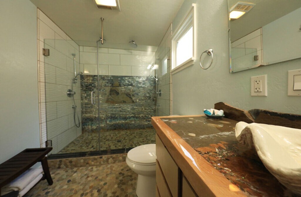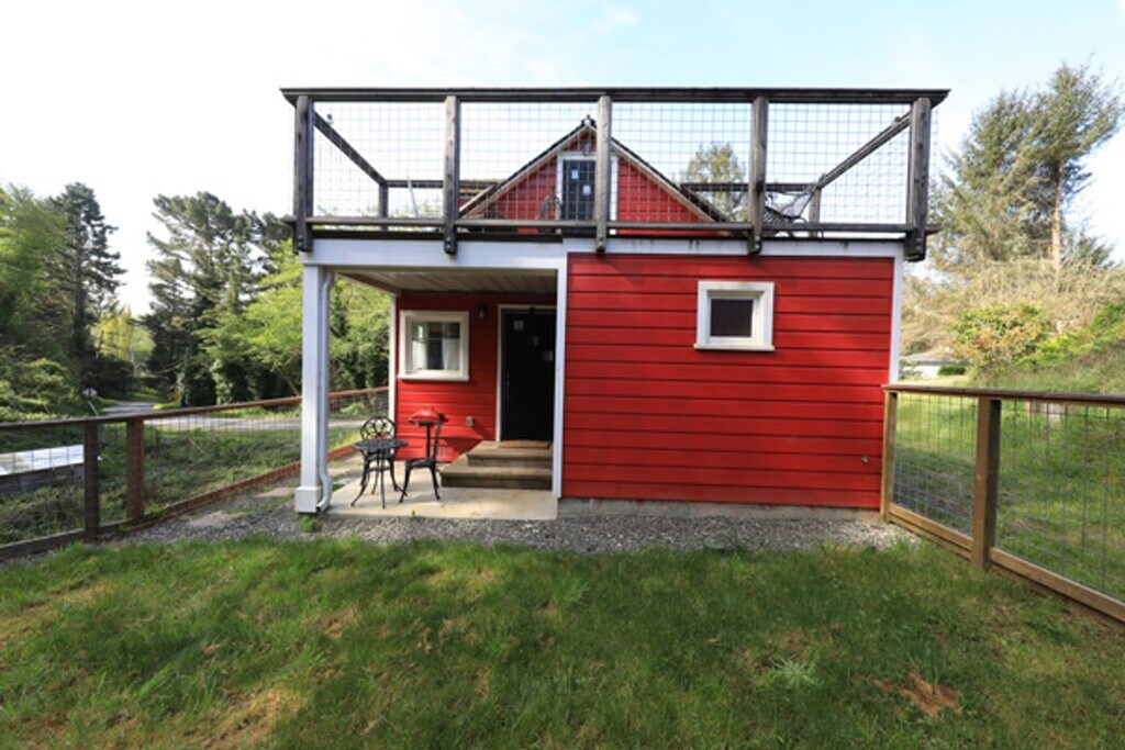 This home has been lovingly remodeled with an artistic flair combining a highly functional small space with the peaceful feeling of the sky and ocean. Downstairs features custom cabinetry, ocean themed epoxy poured counters, classy lighting fixtures, a wall bed, a laundry nook, a kitchen with all the modern stainless-steel appliances, and a gorgeous bathroom. The tiled shower stall showcases Camel Rock and the shell sink with the water fall faucet adds a special touch. Upstairs contains the sleeping space with a full-size bed, an office nook, and a balcony overlooking the large fenced backyard. The covered patio offers a great hang out spot looking towards the old red barn that is humorously painted with farm animals. Enjoy living near the most scenic beaches in Humboldt, with quick access to HWY 101, Trinidad 3 miles to the north, and Arcata 12 miles to the south. If you think this would be a good fit for you, please call me at between 9am-6pm to chat and arrange a viewing. An introductory text is greatly appreciated. Tenant pays PG&E/Propane/Water/WIFI/and a $25 monthly fee for sewer(septic tank) $1,750 month/$1,750 security deposit/One year lease to start/ Available early April Amanita Mollier #DRE 02211276 cell