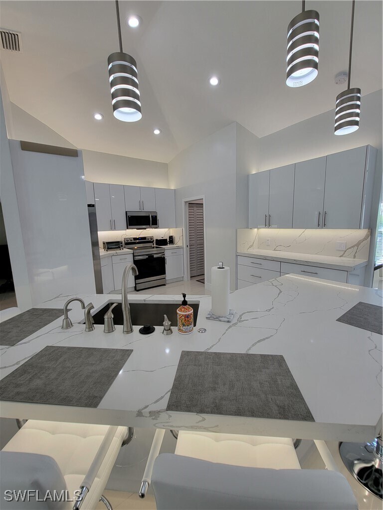 Lawn included in price. Five-star Luxury at its best,absolutely stunning single-family home. Hurricane impact windows and doors and hurricane roll down shutters on the Lanai. Home has beautiful Porcelain tile floors throughout. Kitchen is amazing with beautiful European style soft closing cabinets. Led Lighting all over with dimmers to make the nights cozy & elegant. Gigantic quartz kitchen island with comfy seating. Instant hot water dispenser to enjoy a cup of tea. Smart Refrigerator with tv & music & ask how to make a meal you always wanted. Living room has electric fireplace,large smart TV everything to watch while reclining back in the lush living room. Have work to do,there is a motorized adjustable height desk for you. also,extra reclining seating & backgammon table. Primary bedroom is amazing,so large also has full size reclining couch & reclining chair with overhead reading light to escape into your book. Primary Bathroom is one of a kind with floor to ceiling porcelain tile. Master shower is better than any spa with several showerheads. Guest bathroom is also a masterpiece of elegance,enjoy a bath and listen to your music. Two extra guest bedrooms. Smart TVs in all rooms with USB & C outlets. Large Backyard.