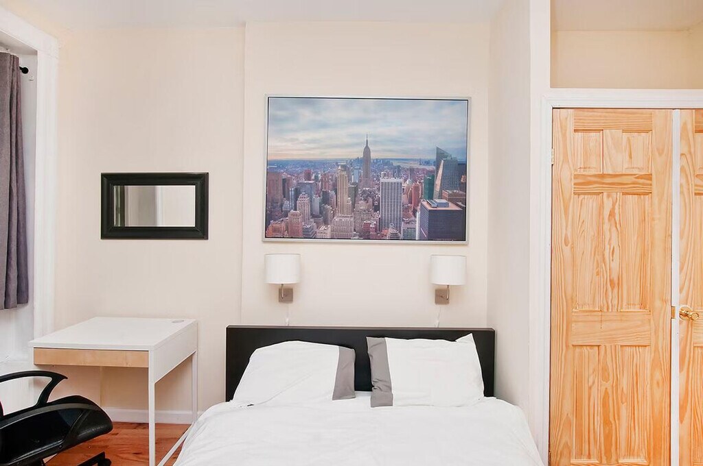 This amazing renovated 2-bedroom apartment is located in a walk-up building on a quiet residential block, comfortably fitting up to 4 people. It is conveniently situated very close to public transportation, making it easy to explore the city. The apartment features one bedroom with a full-size bed and a second bedroom with a queen-size bed. It includes a bathroom and a fully equipped kitchen with stainless steel appliances, including a microwave and dishwasher. The kitchen is stocked with pots, pans, and utensils for your convenience. Additional amenities include a washer and dryer inside the apartment and a flat-screen TV. Utilities are not included in the monthly rent and run for $300 per month, to be paid directly to the host at check-in. The neighborhood offers a variety of retail stores such as H&M, Mac, Gap, and Banana Republic. Dining options include Sylvia’s, Red Rooster, Jacobs, and Chez Lucienne. Entertainment venues like the Apollo Theater, Harlem Jazz Museum, Cotton Club, and Lenox Lounge are nearby. The apartment is also just 3 blocks away from a major shopping center, including Target, Old Navy, Marshalls, and Burlington. It is a 14-minute walk from the 4, 5, and 6 subway lines and a 3-minute walk from bus lines M15, M101, M102, and M103, allowing for easy access to all the city has to offer. No smoking, no pets, and no parties are allowed on the premises. If you require early check-in, late check-out, or have any special requests (e.g. additional guests, luggage storage), please submit them in writing in advance. All requests are subject to availability and may incur an additional fee if approved. As part of our standard guest verification process, the partner will request that you complete a short application and authorize a background check a few weeks prior to arrival. Instructions will be provided closer to your check-in date. Please note: A $75 application fee may apply. [SI]