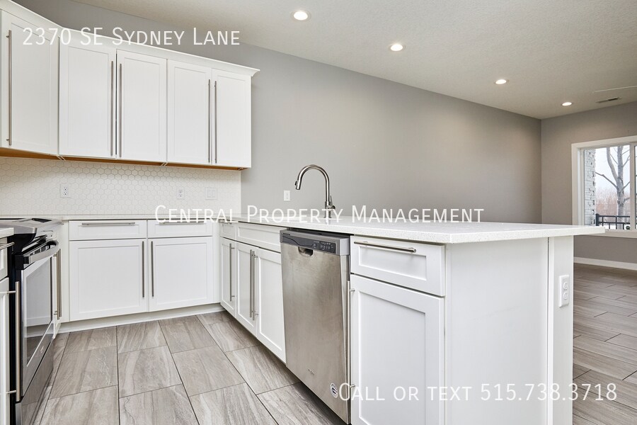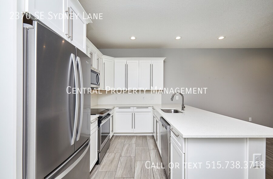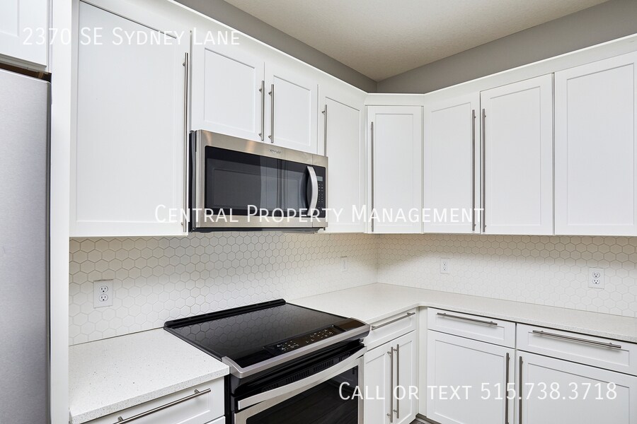 END UNIT - Beautiful townhome located in Kettletsone Heights townhome development in Waukee. This location provides for easy interstate access and is situated along the Grand Prairie Parkway corridor which includes new retail, restaurant, and entertainment developments including the Vibrant City Music Hall. The main level floor plan consists of garage entry, front covered porch, kitchen with elongated counter-top for dining, dining area, family room, a utility closet and a storage closet, and a 12 bath. The second level floor plan consists a huge master bedroom suite with awesome walk-in closet and private bathroom, two additional bedrooms, a second full bath, a laundry closet (witch washer & dryer), and a linen/storage closet. Completing the 2nd level is an oversized linen closet & laundry area including washer & dryer. Appliances include washer, dryer, refrigerator with water/ice dispenser, dishwasher, microwave, and oven/stove. Finishes include stainless steel appliances, tile backsplash, quartz counters, LVP or tile flooring, and high-end custom cabinets (dovetail construction, full extension, soft close doors & drawers, with hardware). Landlord pays HOA dues which provide snow removal and lawn care service. Tenant is responsible for all utilities including gas, electric, water, and internet. *Photos above may not be of exact townhome but floor plan is the same and finishes are similar