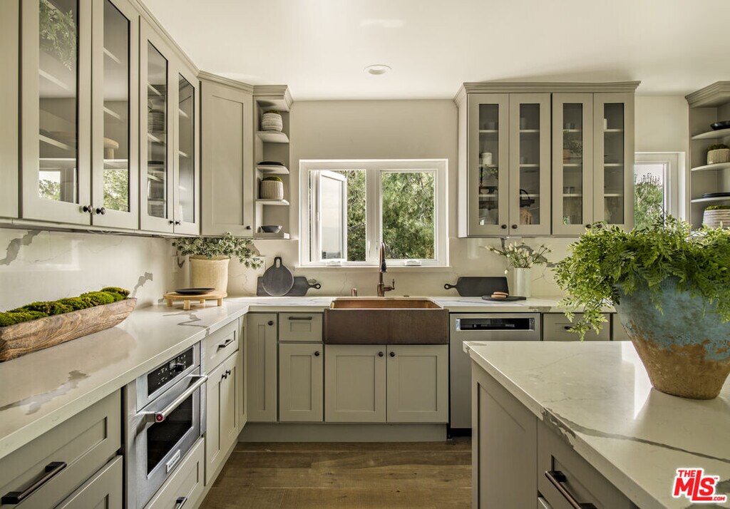 Perched in the lush section of the Hollywood Hills, this thoughtfully reimagined bungalow pairs timeless character with refined modern living. Expansive picture windows frame a tranquil, park-like canyon setting, filling the home with natural light and a quiet sense of privacy. Warm wood floors and a restrained contemporary palette create an atmosphere of sophistication. The thoughtfully designed kitchen features ample custom cabinetry, stone countertops, and premium stainless appliances. The primary suite serves as a peaceful retreat with a spa-inspired bath and serene private patio. The second bedroom also is equipped with its own living room/Den and a secluded outdoor patio, perfect for morning coffee and meditation. A versatile bonus room offers flexibility as a home office, creative studio, or potential third bedroom. The backyard terrace functions as a venue for entertaining guests or enjoying relaxed family barbecues beneath the trees. Just moments from the Hollywood Reservoir, The Hollywood Bowl, and incredible hiking and horseback riding trails, this residence delivers the rare balance of vibrant city access and the serenity of hillside living. (Two year lease is preferred. 13-Month Minimum.) MLS# 26663741