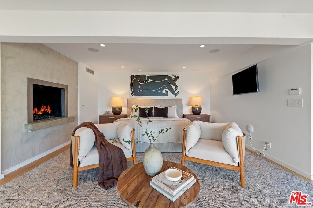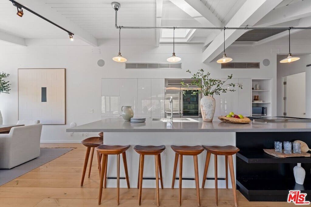 Nestled in the heart of Malibu, this architectural post-and-beam residence offers sweeping, unobstructed views of the ocean, city lights, mountains, and nearbyislands. Positioned on a quiet cul-de-sac in the highly sought-after Malibu Knolls, this gated retreat exudes style, serenity, and natural elegance. Thoughtfully designed withfloor-to-ceiling glass and rich wood beams throughout, the home seamlessly integrates indoor and outdoor living. The main level welcomes you with expansive livingspaces, including a sunlit family room anchored by a wood-burning fireplace, a gourmet chef's kitchen with walk-in pantry, and an inviting dining areaall opening to wrap-around decks that frame the breathtaking views.This level also features three en-suite bedrooms, including a spacious junior primary suite, offering comfort and flexibility forguests or family members. The lower level is dedicated to the exceptional primary suite, a private sanctuary featuring a luxurious spa-like bath with oversized steam shower,soaking tub, generous walk-in closet, and direct access to private wrap-around terraces. Adding to the property's appeal is a detached guesthouse with its own entrance,private deck, and stunning ocean vistasperfect for visitors or creative workspaces. The terraced garden below offers room for play, reflection, or personal cultivation, whilemature trees surround the property, providing rare privacy without sacrificing natural light or panoramic scenery.A true Malibu escape that effortlessly blends refined architecture with California's coastal beauty. MLS# 25627485