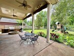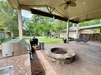 Spacious & beautifully maintained 4-bedroom,3.5-bath home located on a quiet cul-de-sac in the best location in Cinco Ranch! Off the front entry is the home office featuring built-in shelving & French doors for added privacy. The formal dining room has crown molding,beautiful natural light & rich wood floors which lead into the kitchen. Chefs will adore the gas cooktop,large island,& abundant cabinet/counter space. The family room is partially open to the kitchen & has a cozy fireplace w/mantle as well as separate space for your TV! The oversized 1st floor primary suite has a spa-like ensuite bath w/dual sinks,dual closets,soaking tub,& separate shower! Upstairs includes the 3 secondary bedrooms,2 full baths,and a generous sized gameroom w/fun chalkboard. Step outside to your backyard paradise with a huge covered patio,outdoor kitchen,gas fire pit,swing set,& no back neighbors! 3 car garage. Lawn care & internet included as well as washer/dryer & fridge. MLS# 73109322