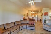 Escape the hustle and bustle of everyday life and feel at home in this 2-bedroom, 1-bathroom condo in Overgaard, located on the second floor and requiring stairs for access. This newly renovated 782-square-foot condo offers a delightful stay with indoor comforts like a sectional couch, an electric fireplace, a dining table, and a Smart TV connectable to Netflix, Prime Video, and other streamers. The kitchen is fully equipped with a dishwasher, refrigerator, oven with a 4-burner stovetop, microwave, island, Keurig coffee maker, cooking basics, dishware, flatware, and an ice maker. Additional amenities include free Wi-Fi, central heating and A/C, linens, towels, complimentary toiletries, a hair dryer, and hangers. Guests have access to community amenities including a clubhouse, fitness center, and coin laundry. Community parking is available for up to 3 vehicles. Trailblaze up Tall Timbers Trailhead, explore where the desert meets the mountains in style with Bison Ranch Trail Rides, or take a day trip to Agate Bridge. Enjoy outdoor features like the private, covered balcony and access to the community courtyard with seating. Smoking, pets, events, parties, and large gatherings are not allowed. Additional fees and taxes may apply, and a photo ID may be required at check-in. [SI]