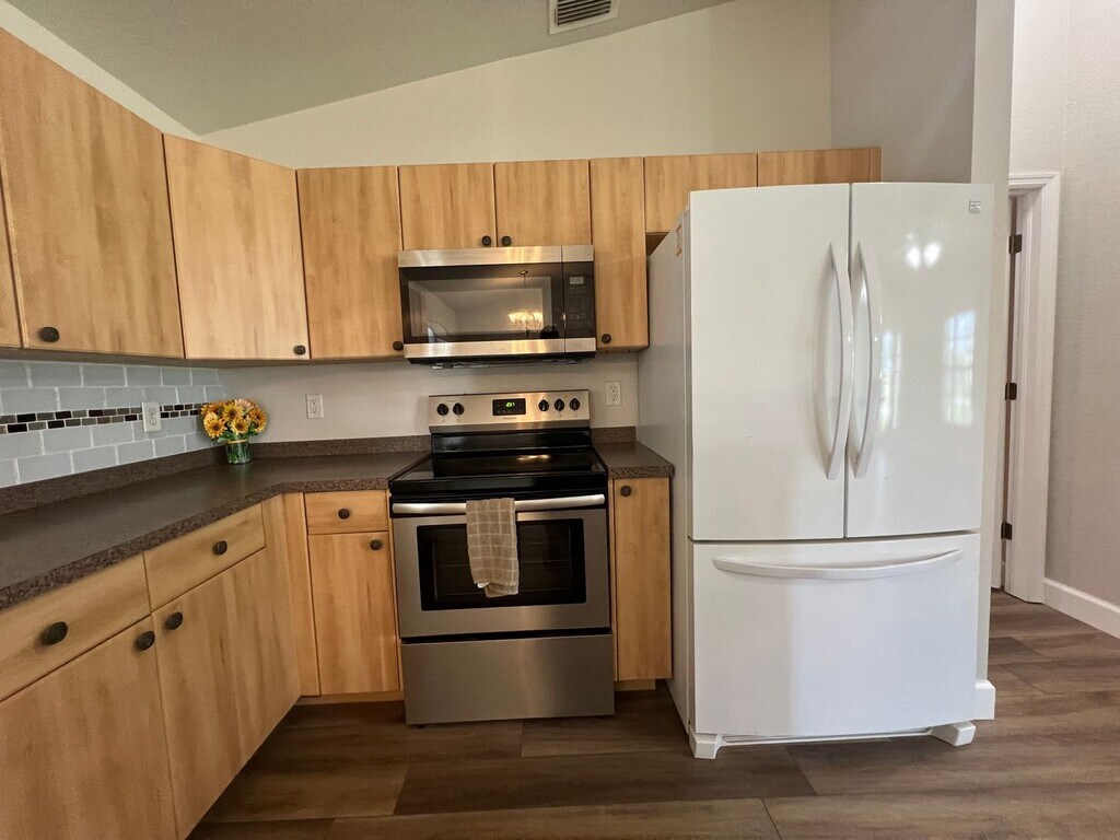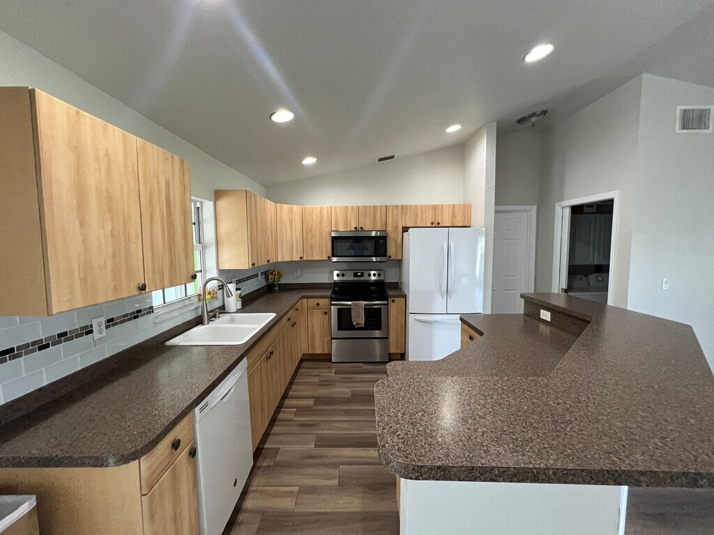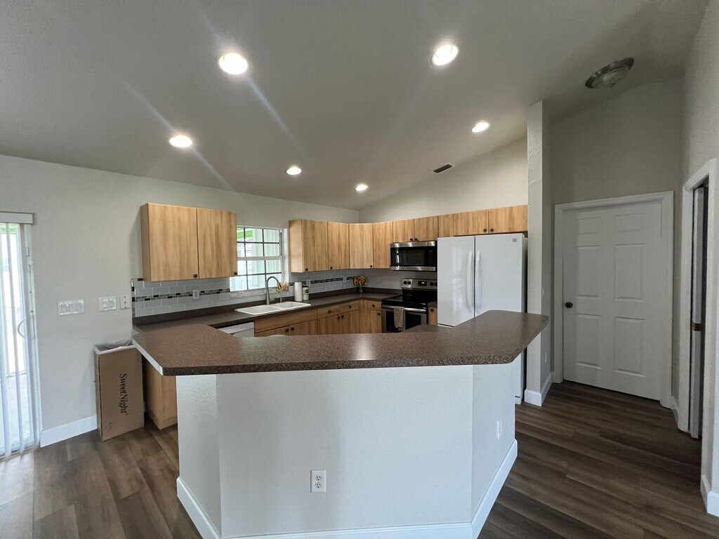 Monthly Rent: $2,195/month. Enjoy This newly renovated and spacious 3 Bedroom / 2 Bathroom, Custom Pool House that is situated on corner lot in Harbor Heights. Large living area with oversized kitchen island and dining area. Applicances include french-door style fridge and farmhouse sink. New LVT Flooring runs throughout the living area and kitchen. Split Floor plan features the primary suite on one side with the two smaller bedrooms and bath on the other side. Step out the rear sliding glass doors to enjoy the FL weather on your Screened-in Lanai. Huge Private backyard with paved area for Boat/Camper parking. Large Garden area featuring avocado trees and looking for love! This home features an attached Two Car Garage and is conveniently located less than a mile from the Harbor Heights Park + Boat Dock ----- All Rental Applicants will be screened for Rental, Criminal & Credit checks. Please be prepared to pay First month, Last Month and Full Month Security Deposit Prior to Move-in. To Apply Now or Schedule a Showing: