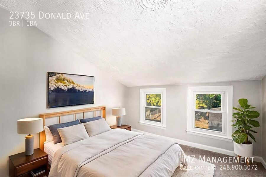 Step inside this freshly renovated gem at 23735 Donald Ave and fall in love with its modern charm and inviting feel. This 3-bedroom, 1-bath home has been thoughtfully updated from top to bottom, featuring new flooring, fresh paint, and modern finishes throughout. The bright living room flows effortlessly into a refreshed kitchen with plenty of cabinet space, perfect for everyday living or entertaining. Enjoy a spacious yard ideal for relaxing weekends or gatherings with family and friends. Conveniently located near schools, parks, shopping, and major roadways. Section 8 accepted. ALL SHOWINGS MUST BE ACCOMPANIED BY A REAL ESTATE AGENT, IF YOU HAVE AN AGENT PLEASE CALL THEM TO SCHEDULE, IF YOU DO NOT HAVE AN AGENT ONE CAN BE PROVIDED FOR YOU. SHOWINGS CAN NOT BE SCHEDULED ONLINE. PLEASE CALL 248 nine two seven 24 seven zero SO WE CAN CONNECT YOU WITH A REAL ESTATE AGENT. Please visit our website at jmzmanagement . com to apply or find additional information.