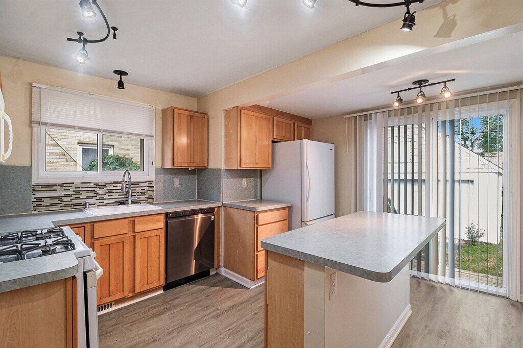Don't miss the opportunity to make this beautifully maintained 3-bedroom,1.5-bath bungalow your next home! Step onto the spacious front porch,the perfect spot to relax with your morning coffee or unwind on warm summer evenings with outdoor furniture and friends. Inside,the bright and welcoming living room features refreshed hardwood floors,a ceiling fan for added comfort,and new windows that fill the space with natural light. The updated kitchen is both stylish and functional,boasting modern vinyl plank flooring,brand-new cabinets,and beautiful countertops. Cooking will be a pleasure with all essential appliances included: stove,refrigerator,microwave,dishwasher,and garbage disposal. The main bathroom offers ceramic tile flooring,a reglazed bathtub with elegant glass doors,a vanity with built-in storage,and a mirrored medicine cabinet for added convenience. Just outside the bathroom,you'll find a large linen and storage closet,providing extra organization space.