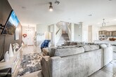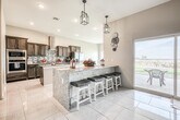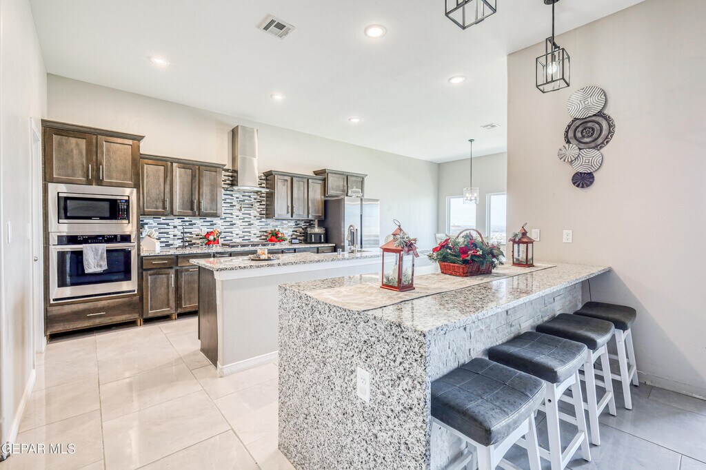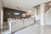 This modern smart home seamlessly integrates advanced technology with luxury design,offering comfort and breathtaking views across its 5 rooms and a bonus study/office. The residence is equipped with a comprehensive home automation system allowing control of climate via smart thermostats,and an integrated built-in home sound system accessible from a central hub or smartphone app. The impressive gourmet kitchen,a central gathering space,showcases two large islands--one topped with white Silestone and the other with granite complemented by sleek design,state-of-the-art appliances,and sophisticated background drop lighting. The home is flooded with natural light due to an open floor plan and large windows,enhancing the airy and welcoming atmosphere,which extends to the master bathroom's private retreat featuring dual vanities,a spacious walk-in shower,and an in-shower tub. The exterior features are equally impressive,with a second-story bedroom balcony providing unparalleled panoramic views.