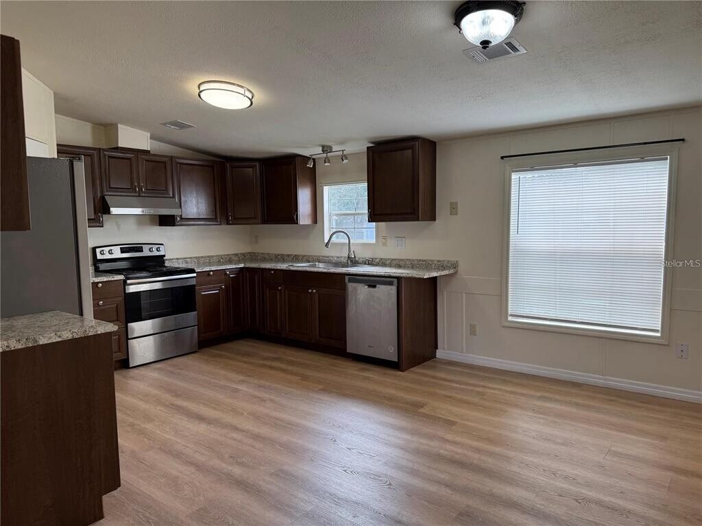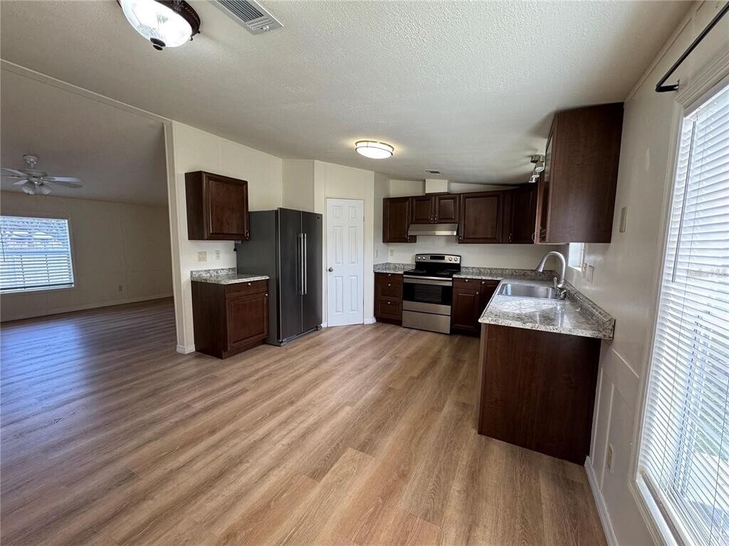 This fully remodeled 3-bedroom,2-bath mobile home is located in a quiet rural area of North Lakeland,just 2.3 miles from I-4 (Exit 38). Sitting on nearly an acre of land,the property offers plenty of space with a large front yard perfect for children to play,room for a garden,parking for three or more vehicles,and a screened-in patio to enjoy the peaceful surroundings. Inside,the home has been completely updated with new vinyl plank flooring,fresh paint,modern cabinetry and countertops in the kitchen and bathrooms,brand-new stainless steel appliances including a refrigerator,stove,and dishwasher,along with new light fixtures and ceiling fans throughout. Water,trash,and septic services are included in the rent,while tenants are responsible for electricity,cable or internet,and maintaining the yard. No pets are allowed. At move-in,a $75 tenant processing fee is due along with rent and deposit(s). Applicants must show monthly income of at least three times the rent,have a minimum credit score of 600,no evictions,and pass credit and background checks.