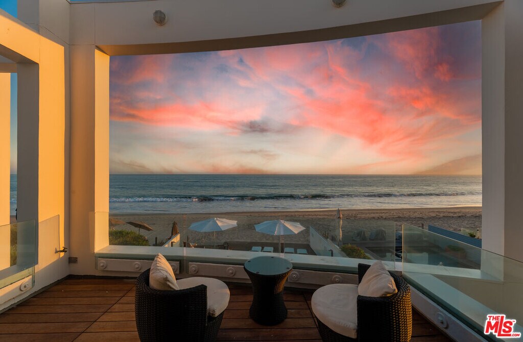 Located on the deepest part of sandy Malibu Colony beach, this stunning, newly remodeled architectural residence evokes the essence of Malibu beach sophistication. Gated for privacy, one enters into a fully landscaped courtyard where they are greeted by a modern water feature which leads to a large glass and beam enclosed entry. The impeccably furnished dining and living areas are as inviting as they are inspiring with soaring ceilings, recessed cove lighting, retractable buffets, significant art walls, contemporary fireplace and an ocean side wall of glass. Show off your culinary skills in style while watching the waves break in this newly completed entertainer's kitchen, which showcases gorgeous stone finishes, Miele appliances and touch-open cabinetry for that extra touch of class. The comfortable den includes a chic gallery wall of photography and display shelves for your collections. A private stairway takes you past the office alcove to the ocean view master suite and bath equipped with a glass privacy partition, skylights that allow you to star gaze from the bed, as well as a sitting area and oceanfront patio. There are three additional en-suite bedrooms and a detached studio perfect for live-in staff or visiting friends. There is an internal courtyard opposite the entry for casual conversation over a fire pit. The spacious beachfront patio with pool, spa, lounging and dining areas is the dream location for entertaining friends or a peaceful retreat for relaxing. The height of luxury in the heart of Malibu's 'Gold Coast' awaits! Call for annual pricing. MLS# 20-660366
