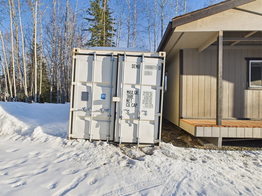 This cozy cabin offers a warm and efficient living space, ideal for someone looking for a quiet and simple home. The cabin is heated by a reliable Toyo stove to keep it comfortable during the winter months. Inside, you'll find a full kitchen with plenty of cabinet space, a private bathroom, and a washer and dryer in the bedroom. Tenants are responsible for electricity and water filter replacements. Please note that pets are not allowed. This cabin is a great option for someone seeking a peaceful and practical living space. This unit comes with a conex for extra storage! Click here for a virtual tour: