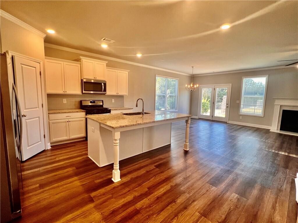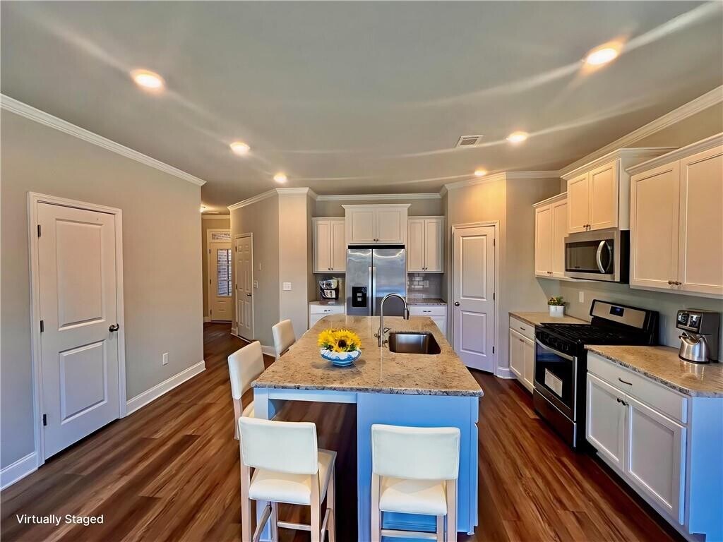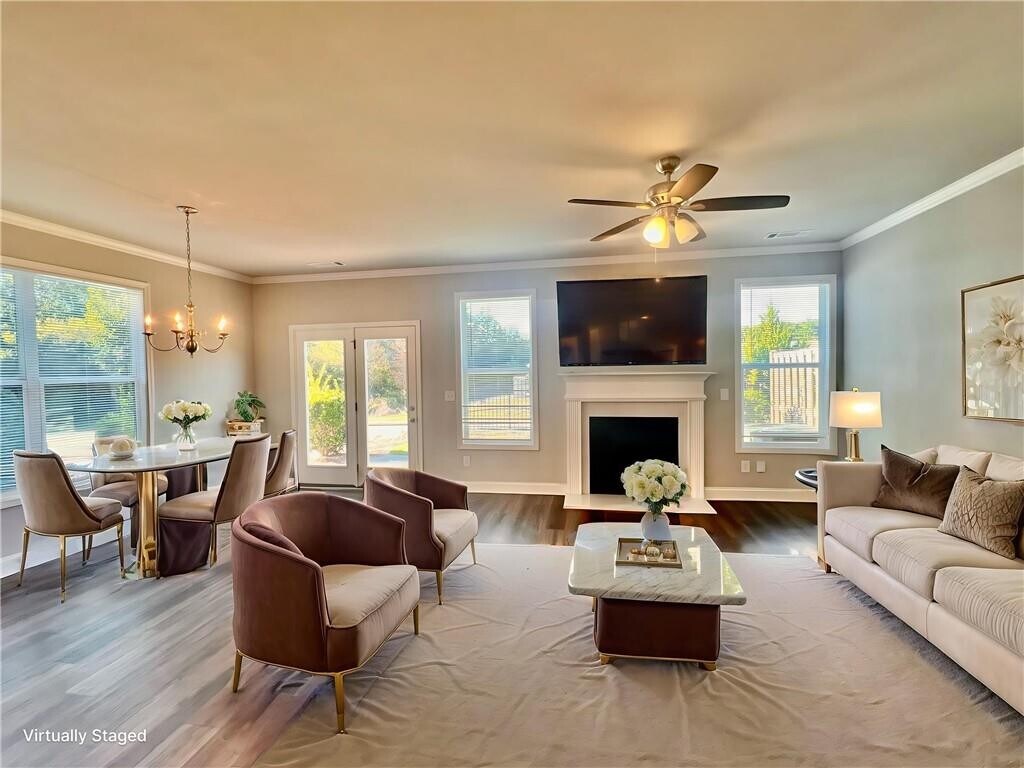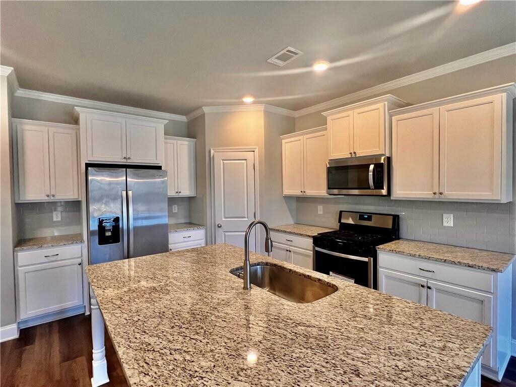 Step into modern elegance at this striking 3 bedrooms,2.5 bathrooms end-unit townhome,built in 2021 and nestled in the desirable Morgan Landing community of Buford. This home presents an open-concept,two-story floor plan that’s bathed in natural light. The main level features luxury vinyl plank flooring,creating a seamless flow from the entry through to the living spaces. The gourmet kitchen is a chef’s delight: white painted cabinetry,a large island for gathering,granite countertops,and a walk-in pantry providing ample storage and functionality. A welcoming fireplace anchors the living room,offering cozy ambiance and style. Retreat to the oversized master suite,boasting a luxurious bath and a huge walk-in closet — a personal sanctuary for rest and rejuvenation. Privacy and tranquility are enhanced by the townhome’s long driveway and its end-unit position,which backs to wooded views — perfect for a quieter,more secluded feel. Located for convenience: near the Mall of Georgia and with easy highway access,making errands,dining,and travel a breeze. Don't miss this lovely house,make it your next home!