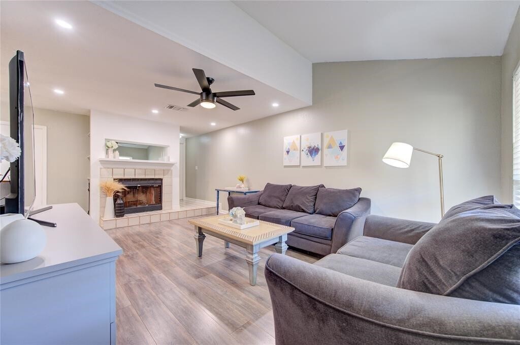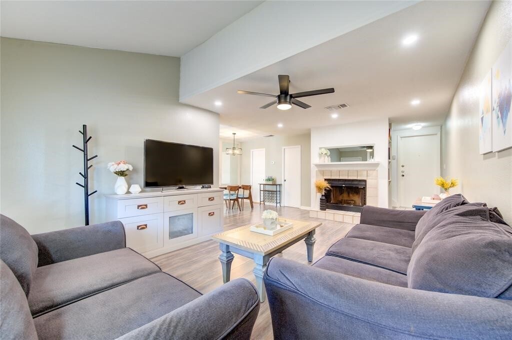 Beautifully updated corner unit with thoughtful upgrades throughout. The kitchen offers a center island,granite countertops,undermount sink,stainless steel appliances,and a walk-in pantry. Refrigerator,washer,and dryer stay with the home. The first floor features durable wood-look porcelain tile,while the bedrooms have brand-new carpet. Recent improvements include four new ceiling fans,three new toilets,and new faucets at both the kitchen sink and wet bar. Enjoy a cozy wood-burning fireplace,extra storage under the stairs,and walk-in closets in every bedroom. Outside,you’ll find a spacious wraparound balcony and wraparound patio perfect for relaxing or entertaining. The garage includes an automatic opener and built-in storage cabinets for added convenience. MLS# 25201587
