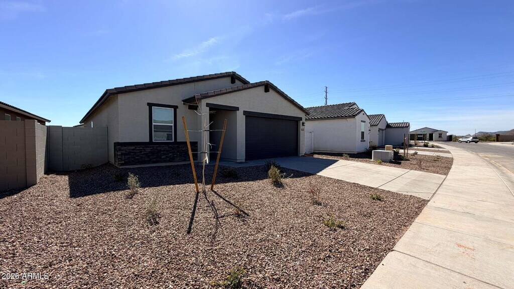 4 bedroom,2 bathroom single level new build offering 1,832 sq ft in San Tan Valley. The open layout connects the living area to a well appointed kitchen featuring dark umber cabinets with hardware,granite countertops,generous tile flooring,and all appliances included including refrigerator,washer,and dryer. Clean finishes and functional design throughout. The primary suite offers a private bathroom and walk in closet. Three additional bedrooms provide flexibility for guests or workspace. Backyard includes newly installed turf. Tenant responsible for landscaping and pest control.