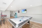 This beautifully renovated 1850 SF single-family home is conveniently located just 22 minutes from O'Hare Airport and 25 minutes from downtown Chicago. With three bedrooms and two bathrooms, the master bedroom features a king-size bed, while the other two bedrooms each have a queen bed. The spacious living room can accommodate an air mattress, making a total of four beds. The kitchen is fully equipped with plenty of utensils, cooking spices, and oils, ensuring you feel at home. This home offers a single-car garage with additional driveway parking if needed. It is children-friendly, featuring a pack and play sleeper, a stroller for tourism activities, a high chair for dining, and a booster seat for convenient traveling. The property is equipped with five LCD televisions with cable access in English and Spanish, Netflix and Prime Video access (with your login), and Wi-Fi throughout the entire home. The living area boasts a 55" TV and a soundbar, while each bedroom has a 40" TV. Enjoy over 50 board games and playing cards for entertainment. Situated in a prime location, this home provides easy access to both O'Hare Airport and downtown Chicago, making it ideal for travelers and city explorers alike. The property requires submission of ID and security fees prior to check-in, and failure to do so will result in no refunds or access to the property. Fees may vary for long-term stays, and reservations without security fees paid upfront are not accepted. The inventory of available homes changes frequently, so availability may vary. The home includes premium amenities such as an air hockey table, a pinball machine, and an arcade cabinet with 2000 classic games, along with over 10 cooking spices and three types of cooking oils for a delightful meal experience.