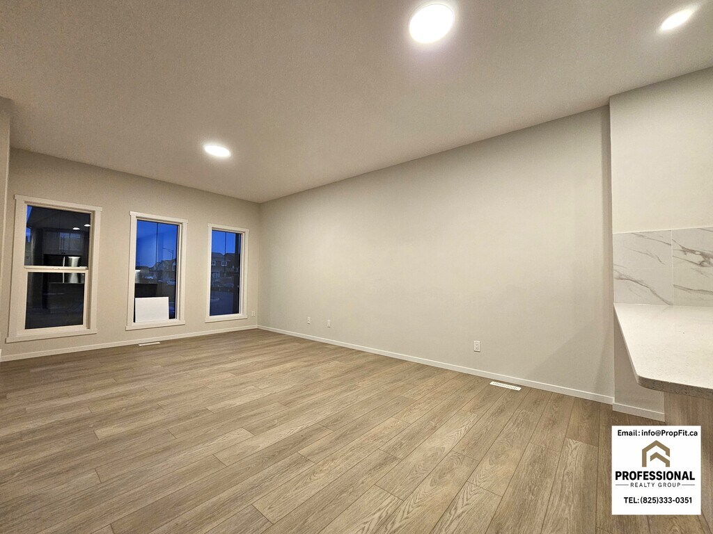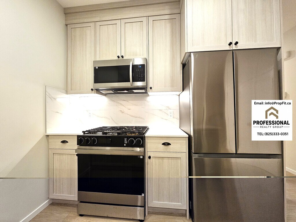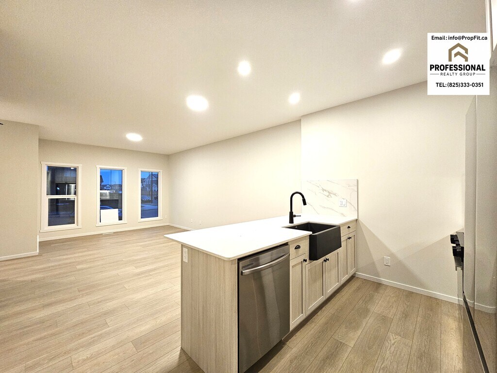 Stunning Brand New Home in The Orchards-Modern Luxury Main Floor Living Main Floor - 238 Orchards Blvd SW Edmonton AB T6X 2G9 • RENT: $2148 + $350 Flat Rate Utilities (Power, Heat, Water & Waste) • 4 bedrooms 3 full bath • Fixed Term Lease: 6 months or 12 months • Double Garage INCLUDED! • One small, well-behaved pet may be considered (subject to approval and a $50 monthly pet fee) • Credit, Reference & employment checks will be required with applications. Features: 1) Bright open-concept layout with large windows and modern LED lighting 2) Stylish kitchen with quartz counters, elegant backsplash, soft-close cabinets, and full stainless-steel appliances (gas stove + microwave + fridge + dishwasher) 3) Huge walk-in pantry with full shelving 4) Luxury vinyl plank flooring throughout (no carpet on main floor) 5) Spacious bedrooms with large closets and bright windows 6) Beautiful bathroom with quartz vanity and full tiled shower 7) Upper-level laundry with front-load washer/dryer and storage shelves 8) Private backyard access with rear entry 9) Double attached garage (full exclusive use for main-floor tenants) 10) Private front entrance with keypad lock Brand New Beautiful Home–High-End 2 Bedroom Basement Suite with Private Entrance Basement - 238 Orchards Blvd SW Edmonton AB T6X 2G9 • RENT: $1298 + $200 Flat Rate Utilities (Power, Heat, Water & Waste) • 2 Bedrooms, 1 Bathroom • Fixed Term Lease: 6 months or 12 months • Street Parking • One small, well-behaved pet may be considered (subject to approval and a $50 monthly pet fee) • Credit, Reference & employment checks will be required with applications. Features: 1) Private, well-lit side entrance with secure digital keypad lock 2) Designer kitchen with quartz countertops, full-height backsplash & soft-close cabinetry 3) Stainless steel appliance package including gas stove, microwave hood fan, dishwasher & large-capacity fridge 4) Open-concept living and dining area with elegant vinyl plank flooring 5) Two bright, generously sized bedrooms with modern lighting and large windows 6) Spa-inspired 4-piece bathroom featuring quartz vanity and premium tile 7) In-suite Whirlpool laundry – full private laundry convenience 8) Oversized storage area with built-in shelving 9) Independent thermostat control for personalized comfort 10) Contemporary color palette & LED lighting throughout for a clean, modern feel Offered by PropFit Property Management - a professional property management group licensed under the Professional Realty Group. *Advertised price reflects the discount rate for a tenant paying on or before the 1st of the month, subject to lease rules and regulations. Any overages beyond the flat-rate utilities budget will be shared among tenants.