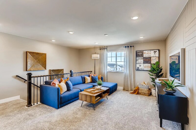 Property Id: 1218053 Main Level - Open floor plan seamlessly connecting the kitchen, living, and dining areas, with roller shade window coverings throughout. Guest bedroom with easy access to a full bath. Dedicated home office with a built-in desk and cabinets Second Level - Loft area providing additional living space. Spacious primary bedroom featuring an attached full bath and walk-in closet. Two additional bedrooms with a full bath. laundry room. Outdoor and Additional Features - 3-car garage offering ample parking and storage. Unfinished basement for extra storage or potential use. Community Amenities - Located in HOA community featuring a clubhouse, gym, swimming pool, and parks. Prime Location - 20 minutes to Anschutz Medical Hospital 20 minutes to Denver International Airport (DIA) 30 minutes to Downtown Denver 20 minutes to Buckley Air Force Based. Additional Fees - None. Rent covers trash/recycling and access to club house