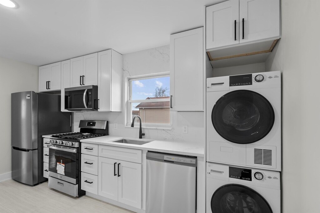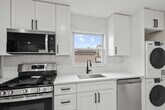 Spacious and beautifully renovated 2-bedroom, 1-bath apartment featuring hardwood floors throughout and abundant natural light. The fully updated kitchen offers modern appliances, sleek finishes, and plenty of cabinet space. Enjoy the comfort of recessed lighting, generously sized bedrooms, and the convenience of an in-unit washer and dryer. One dedicated parking space is included. A perfect blend of style, space, and functionality.