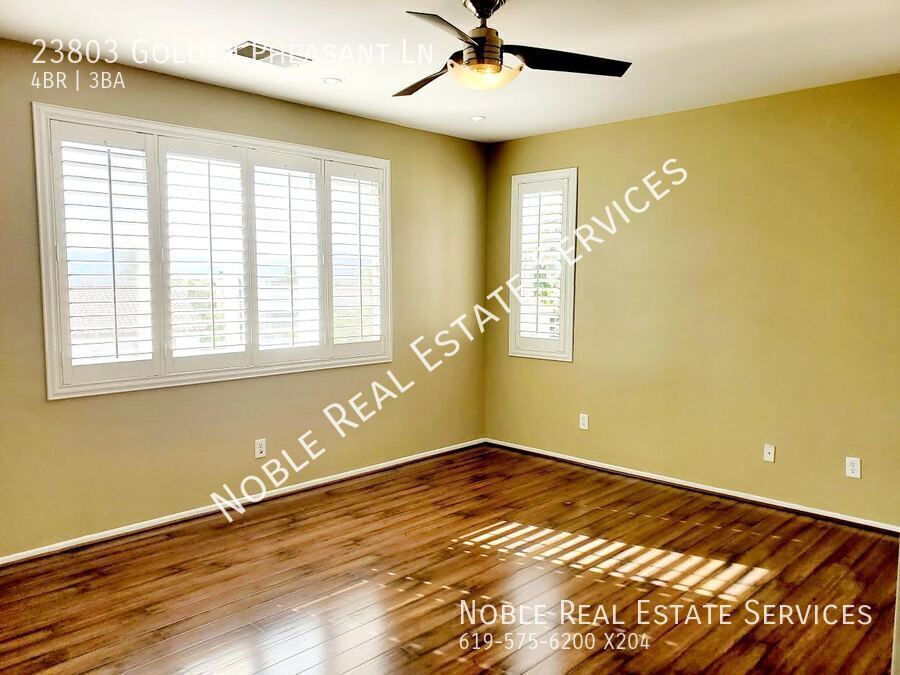 2995.00 Dogs OK Cats OK Pets OK. Breed restrictions apply. No Yes Deposit: $2995 **On Approved Credit** Welcome to this gorgeous 4-bedroom home that perfectly blends comfort, functionality, and style. Step inside to find a bright, open floor plan with laminate flooring downstairs, tile accents, and laminate carried throughout the upstairs for easy maintenance and a modern feel. The large media room upstairs is perfect for movie nights, gaming, or creating your own entertainment retreat. Enjoy everyday convenience with an upstairs laundry room, shutters for added style and privacy, and a master suite featuring his-and-her closets. This home is designed to keep you comfortable year-round with a whole-house fan and plenty of natural light flowing throughout. Spacious, stylish, and move-in ready—this is the home you’ve been waiting for! (**If no showtimes are available, don’t worry! Go ahead and submit your info and our automated system will let you know when showtimes become available). Also, please be sure to click on the 'Apply Now' button to see all of our requirements and how we work! JG 10/30/25 eb No Noble Real Estate Services www.NobleProperties.info 1371 Presioca St. Spring Valley CA 91977 Yolanda, Emily, or Alex Option #1 2025/12/10