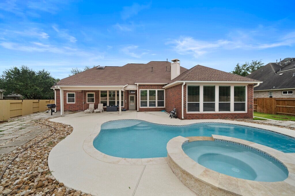 Resort-style living meets everyday convenience in this stunning Seven Meadows home with a sparkling pool and lush landscaping—pool maintenance and lawn care included. The open floor plan features a gourmet kitchen with granite counters,stainless appliances,and ample storage,flowing into a spacious family room and formal dining area. The downstairs primary suite offers a large bathroom with dual vanities and excellent closet space,while upstairs boasts a game room,media room,and three secondary bedrooms. Two staircases provide style and functionality. Enjoy fresh finishes,abundant natural light,and seamless indoor-outdoor living with a covered patio perfect for entertaining. Refrigerator,washer,dryer,and an EV charger are provided,along with an oversized garage for extra storage. Located near top-rated Katy ISD schools,golf,shopping,dining,and with quick access to 99 and Westpark Tollway. MLS# 13512335