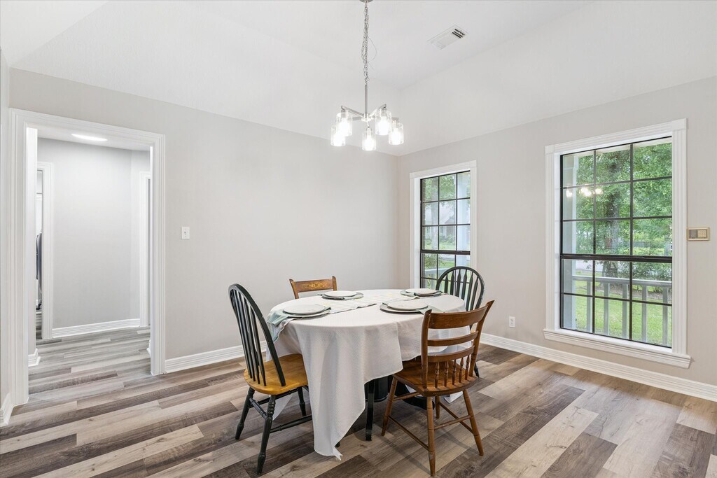 Charming brick home on an oversized wooded half-acre lot,with an additional 1/4 acre side yard,rare for the neighborhood. Sparkling pool/spa (2020),roof (2023) with solar panels + Tesla Battery,providing low-cost electric bills. Recent paint and flooring completed June 2025. Inside,enjoy an open-concept layout with updated kitchen featuring white cabinetry,granite counters,electric oven and cooktop,and a butcher block island. Spacious living room offers vaulted ceilings,a brick fireplace,and views of the backyard. The primary suite includes pool views and a large en-suite bath with dual vanities,soaking tub,and walk-in shower. Two additional bedrooms share a convenient Jack-and-Jill bath. Additional highlights: dedicated laundry room,ample storage,and a detached garage. The covered patio and expansive backyard are perfect for relaxing or entertaining. A rare blend of comfort,function,and outdoor space. Washer,Dryer and Refrigerator are included. MLS# 35022080