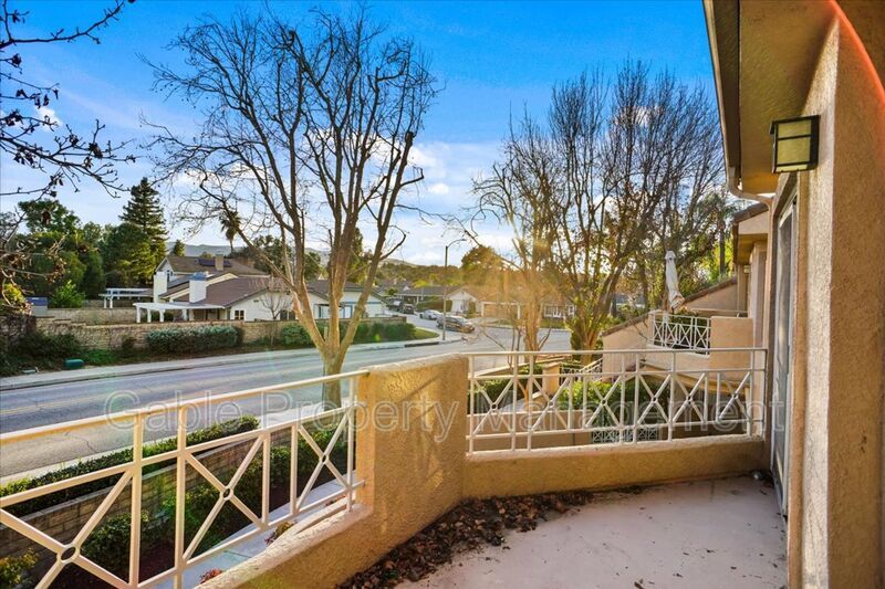 This charming upper-level Santa Fe–style unit features high ceilings and a freshly painted interior. The spacious living room includes a cozy fireplace and opens to a dining area, creating a warm and inviting layout. New carpet runs throughout the home, and large windows provide abundant natural light. A sliding door leads to a private wrap-around patio—perfect for relaxing or entertaining—which connects both the living room and bedroom. The kitchen offers freshly painted cabinets, brand-new appliances (dishwasher, oven, and refrigerator), and opens to the living area with a convenient breakfast bar. The bedroom features new carpet, high ceilings, a sliding door to the patio, and an attached master bathroom with dual sinks, a shower/tub combination, and a walk-in closet. Additional highlights include an indoor stackable washer and dryer and a detached garage. The well-maintained community offers a quiet, private setting with a pool, spa, waterfalls, and ample guest parking. This home is close distance to stores and close to freeways, parks, paseos, award-winning schools, restaurants, and Valencia Mall. Water and trash are included.