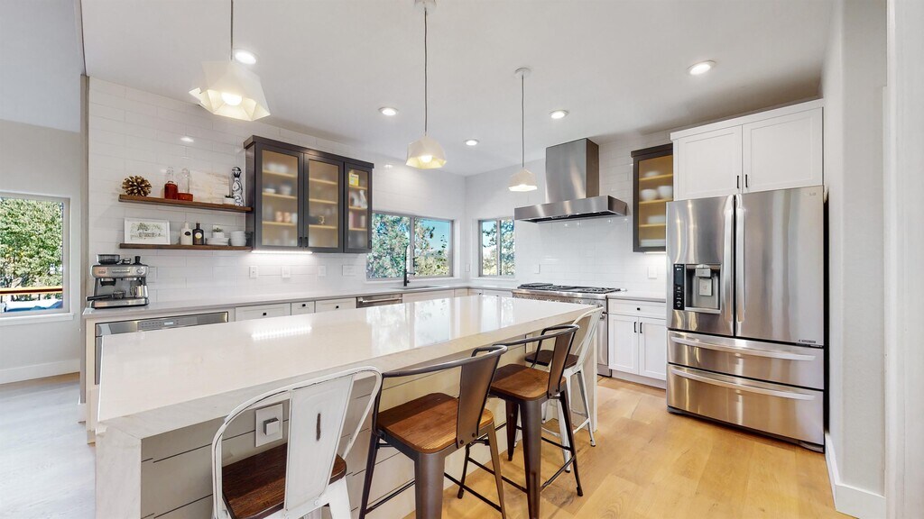 LIVE THE MOUNTAIN LIFESTYLE in this exceptional furnished, open-concept luxury home, thoughtfully built in 2016 to deliver both refined comfort and modern elegance. Located in the highly desirable Indian Hills community, this rare offering spans two beautifully landscaped lots totaling 3 private acres, creating a peaceful mountain retreat with space, privacy, and family-friendly functionality. Nestled in the foothills just southwest of Denver, Indian Hills offers the best of both worlds—the serenity of true mountain living with the convenience of city access. Enjoy cooler temperatures, towering pines, abundant wildlife, and nearby hiking and biking trails, all while being approximately 30 minutes from downtown Denver and within easy reach of Evergreen, Morrison, and major commuter routes. Starlink is now available, making remote work and streaming effortless in a true mountain setting. Inside, the light-filled floor plan seamlessly connects the living, dining, and kitchen areas—perfect for everyday living as well as entertaining. High-end finishes, quality craftsmanship, and expansive windows frame stunning mountain views from nearly every room, enhancing the home's serene and welcoming atmosphere. Step outside to fully embrace the setting. Enjoy sweeping views from the expansive private deck, unwind in the hot tub beneath a canopy of stars, or gather around the firepit while listening to the sounds of nature and local wildlife. Whether starting your day with a quiet cup of coffee or hosting an evening with friends, the outdoor living space is designed for unforgettable moments. The 3-acre property provides ample room for exploration and recreation while maintaining a strong sense of seclusion. An oversized two-car garage easily accommodates large vehicles and outdoor gear, and a washer and dryer are included for added convenience. This is a smoke-free home. No cats permitted. One small dog may be considered. Experience the perfect balance of luxury, comfort, and mountain living. Visit the Mountain Haven Property Management website to complete an application and schedule your private showing. Live your dream mountain lifestyle today—peace, beauty, and luxury await.