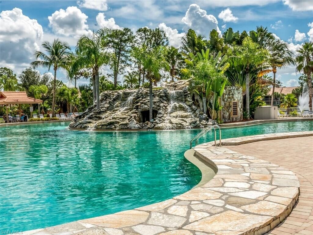 This newly listed home is a beautiful well maintained 3BR 2 full WR condo. Located in secure & gated community of Falling Waters. This home boasts the largest floor plan in the community at 1800sf. Just steps away to the 11,000sf Tropical salt water heated pool (largest in SW Florida), Tennis, bocce, putting green & Clubhouse . Relax in the Lanai with the sight and serene sound of a waterfall . Updated kitchen, Lanai with hurricane impact glass sliding doors. Master with King bed opens to lanai with ensuite with jetted tub. 2nd room with full bed and TV & 3rd room with 2 twin beds. Covered garage Located(5 miles)to downtown Naples, Beach & Pier. Please inquire for further details.