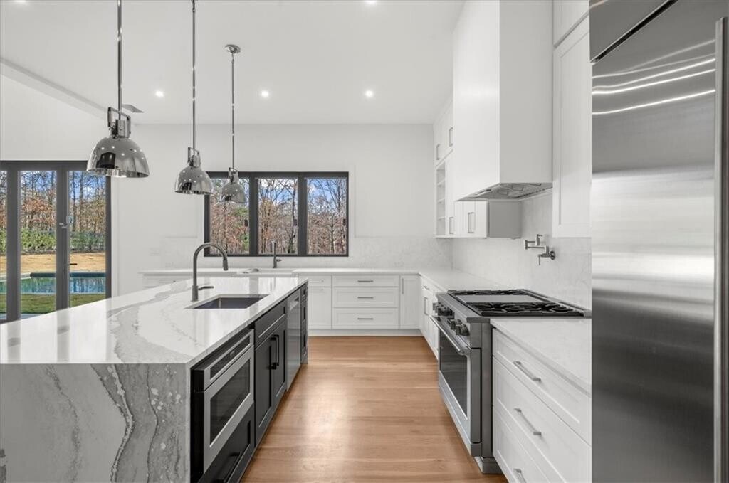 Experience luxury living in this BRAND NEW contemporary masterpiece. This home blends sleek modern design with exceptional craftsmanship and offers an incredible opportunity to be the very first to enjoy its high end finishes and thoughtful details. The OPEN CONCEPT interior is filled with natural light,gorgeous hardwood floors,and showcases beautiful wood accents,soaring ceilings,designer lighting,and a seamless connection to the outdoor living space. The family room features extensive windows and glass doors that overlook the gorgeous modern saltwater gunite POOL and the FULLY FENCED,FLAT backyard. The chef’s kitchen is stunning with a Cambria quartzite waterfall island and matching backsplash,soft close cabinetry,oversized SUB ZERO refrigerator,GE Monogram gas range with accent lighting,GE Monogram pizza oven,large vent hood,pot filler,full size wine fridge,soft close cabinets,and an adjacent pantry. The MUDROOM is exceptional with custom cabinetry,sink,and shiplap details that make it as beautiful as it is practical. With 5 bedrooms and 5.5 baths,every suite feels private and luxurious. The main level bedroom includes an ensuite bath with rain shower and its own exterior entry. The primary suite features a linear fireplace,custom wood paneling with built in sconces,a large walk in closet,and a spa bath with dual rain shower heads,free standing tub,built in shelving,and a waterfall edge double vanity wrapped in Cambria quartzite. Upstairs offers vaulted secondary bedrooms,a loft,and a large BONUS ROOM with wet bar and custom strip lighting. Additional features include 4 sides brick,a 4 CAR GARAGE,2 tankless water heaters,high baseboards,high ceilings on both levels,and beautifully selected finishes throughout. Conveniently located near Sawnee Park,top golf courses,Downtown Canton,and Alpharetta,and within the HIGHLY rated Creekview High School district. All tenants must have a credit score over 700 to apply. Yearly income must be 3 times the monthly rent. All applications are done through Rent Spree. Criminal,income,and credit checks are required for each adult in the home.