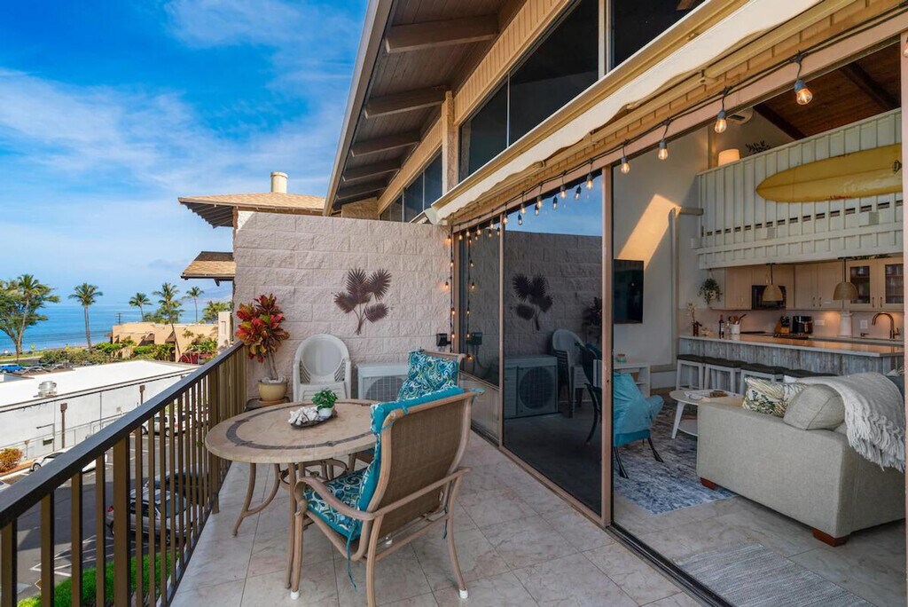 Feel at home in this beautifully updated 1-bedroom, 1-bath penthouse with a loft, offering ocean and mountain views just steps from the beach. Located on the top floor and accessible by elevator with a short staircase of 10 steps leading to the elevator, this condo boasts a fresh, modern ocean vibe. This open loft-style condo features vaulted ceilings with exposed wood beams. The living room includes a queen-size sleeper sofa and a 75” Samsung Smart TV. The kitchen is equipped with quartz countertops and stainless steel appliances, along with a Keurig coffee machine, drip coffee maker, and a hot water kettle. The main-floor bedroom has a king-size bed and another Smart TV, and the remodeled bathroom features a Toto Washlet and a walk-in shower. Upstairs, the open loft bedroom includes a second king-size bed and stunning ocean views. An in-unit washer and dryer with detergent are provided. Guests enjoy access to resort-style amenities, including a heated pool, hot tub, BBQ grills, pickleball, shuffleboard, beautifully maintained tropical gardens, and free guest parking. Situated in the heart of South Kihei, this condo is just steps from Kamaole Beach I, top-rated restaurants, and boutique shopping. Kihei is perfect for swimming, snorkeling, and watching spectacular sunsets. With its central location, you can easily access other parts of the island, such as Lahaina and West Maui. This is not a pet-friendly home, and there is a $500 fine for unauthorized pets. Strictly no parties and events are allowed, and quiet hours are between 9 pm and 8 am. There is no smoking or vaping of any kind allowed anywhere on the property, including outdoor areas, and no shoes are allowed in the home. There is a $500 fine per violation. Registration Number: 39, TA--01 [SI]