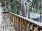 Fabulous mountain retreat in a great commuter location with 2 car parking deck, level entry, fireplace, indoor laundry and tons of upgrades. Beautiful plank flooring and newer carpet, stainless appliances, a gorgeous brick fireplace, wood beamed ceilings, a garden window in the kitchen and a slider to the back balcony. Downstairs is the master retreat with an attached bath, a laundry area, a farmhouse sink and outdoor accesss. The top level has 2 bedrooms (1 with a private balcony) and a full bath. Seasonal stream runs behind the property and a 5 minute drive to Lake Gregory make this the perfect home for easy mountain living freeway close!
