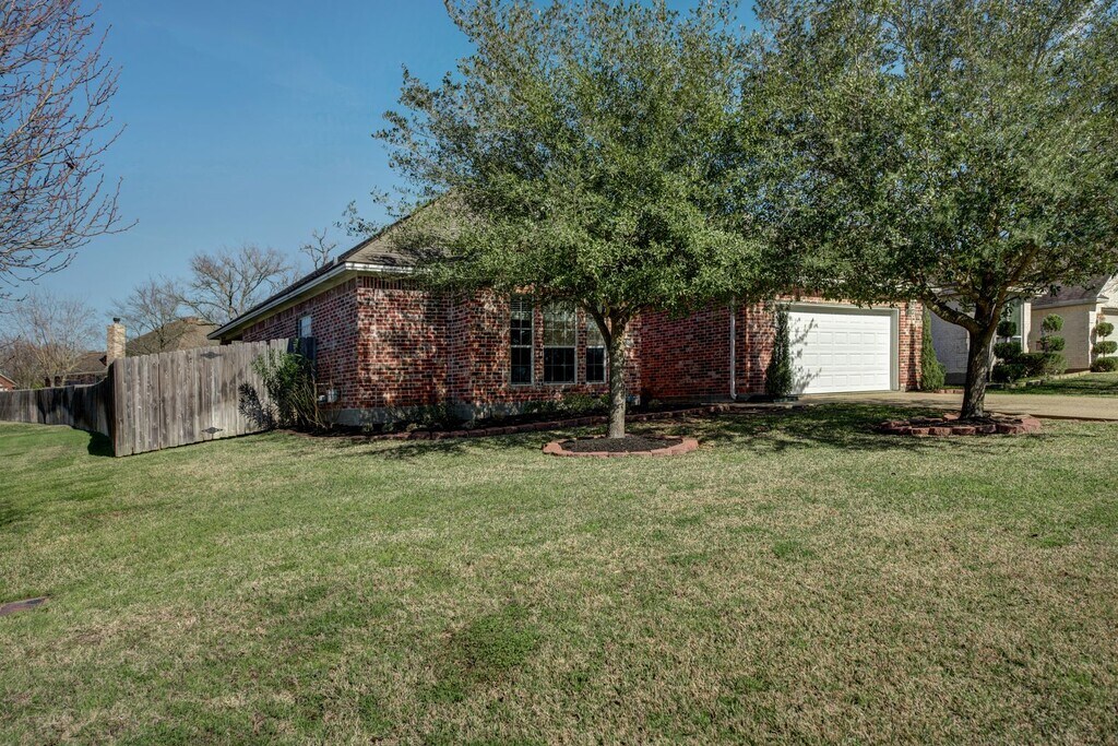 Available August 2026! This adorable 4 bedroom, 2 bath home is located on a corner lot and is near the entrance to the community! High ceilings throughout add to the bright, open feeling of the home. The large kitchen is open to both the living and breakfast rooms which overlook the lovely covered patio and enormous landscaped backyard. If you are looking for quality and value, this is the home for you! Contact Dylan with Aggieland Properties to schedule a tour!