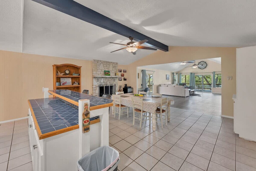 Feel at home in Lakeshore Escape, a charming short-term vacation rental located in picturesque Canyon Lake. This property features three spacious bedrooms and two modern bathrooms to accommodate up to six guests comfortably. The interior features tasteful decor, comfortable furnishings, and ample natural light. Guests can enjoy stunning lake views while grilling on the outdoor deck or relax in the cozy living room. Any number of guests over 6 will have an extra fee. The maximum number allowed is 8 due to the septic. With its prime location, Lakeshore Escape is the perfect getaway for those seeking a peaceful retreat in nature. Quiet hours are between 10:00 PM and 8:00 AM. Use amenities at your own risk. Respect the house like your own home. Please be respectful of the neighbors. Let us know if anything is missing or broken. Registration Number: L1813 [SI]
