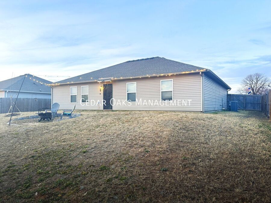 Discover comfort and convenience in this partly furnished 3-bedroom, 2-bath home located in the desirable Tyson Heights area of Springdale. Built in 2019, this well-maintained property features an open floor plan, modern finishes, and a thoughtful split-bedroom layout that offers added privacy for the primary suite. The spacious living area flows seamlessly into the eat-in kitchen, providing an inviting space for everyday living. This home includes partial furnishings, giving tenants an easy move-in experience. All bedrooms are generously sized, and the primary suite includes its own private bathroom. Additional highlights include: • 1,422 sq ft of functional living space • Two-car attached garage • Central heating & cooling • Separate laundry area • Private backyard with room to relax or entertain • Convenient location near schools, parks, shopping, and major routes This home is move-in ready and professionally managed, offering reliable service and a smooth leasing process. At Cedar Oaks Management, we strive to provide an experience that is cost-effective and convenient. That’s why we provide a Resident Benefits Package (RBP) to address common headaches for our residents. Our program handles insurance, pest control, air filter delivery, utility set up, credit building, rent rewards and more at a rate of $49.95/month, added to every property as a required program. More details upon application. Electric Range Fenced Backyard Fire Pit Lawn Mower Mounted Tv Partly Furnished Electric Range Fenced Backyard Fire Pit Lawn Mower Mounted Tv Partly Furnished