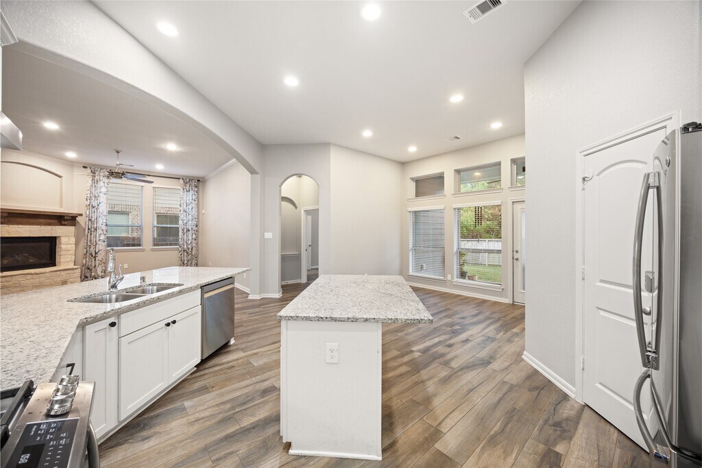 Welcome to this stunning 3-bedroom home with a versatile office that can easily serve as a 4th bedroom! Enjoy privacy with no back neighbors and relax in your spacious backyard featuring a covered patio,perfect for entertaining. Step inside to a grand entryway that opens to a warm living area anchored by a beautiful stone fireplace. The chef’s kitchen boasts premium finishes,ample counter space,and a refrigerator included—ready for move-in ease. The large primary suite offers a serene retreat with a luxurious bath,featuring a separate soaking tub and shower. Thoughtfully designed for both comfort and functionality,this home combines elegance and everyday convenience in one perfect package. MLS# 86279938