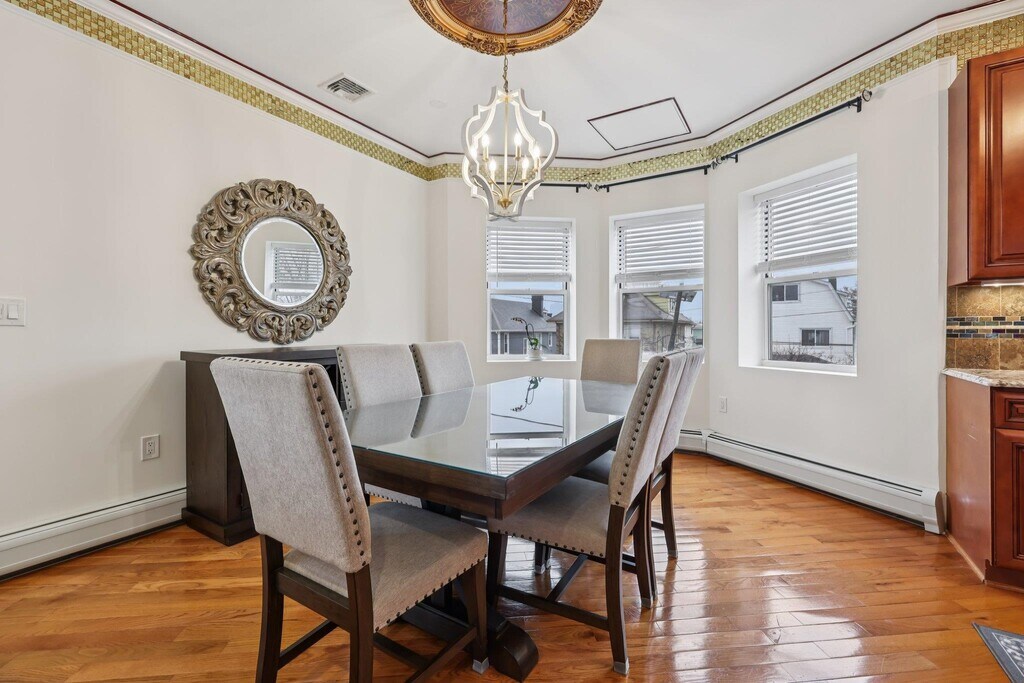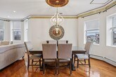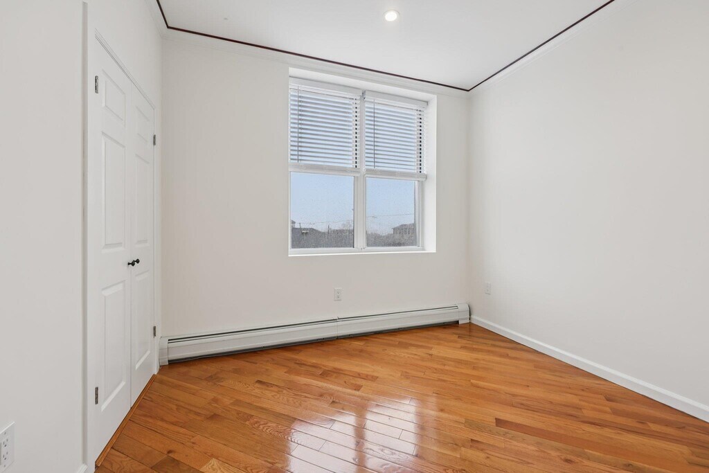 Bright and beautifully updated 2-bedroom, 2-bath apartment on the second floor of a quiet two-family home. This sun-filled unit offers approximately 1,120 sq. ft. of living space with city views from the bedroom and abundant natural light throughout. Features include a modern kitchen with Electrolux range and hood, Samsung refrigerator with filtered water, dishwasher, and in-unit washer and dryer. The primary bedroom has been fully renovated. The primary bedroom, living room, and dining room are furnished; furnishings can be removed upon tenant request. Access to the front porch area for outdoor enjoyment. Conveniently located near shopping, dining, and just steps to NYC transportation. Freshly painted and move-in ready.