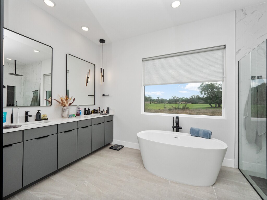 Located in the gated golf community of Providence, this stunning semi-custom 4-bedroom, 3 full bathroom, and 2 half bathroom home is truly a must-see. From the moment you arrive, you'll notice the upgraded landscaping and beautiful water feature, creating a welcoming first impression. As you open the front doors, you're greeted by a private courtyard with a heated pool and built-in spa, offering a peaceful and secluded outdoor living space. To the left of the courtyard is a private office with a half bath, sliding patio doors, and direct access to the garage. This thoughtfully designed home also features a separate in-law suite with its own full bathroom, large vanity, and walk-in shower with glass doors, along with sliding doors overlooking the pool area. Double doors connect the suite to the main home, providing both privacy and convenience. Inside the main living space, the home showcases an ultra-modern design with high ceilings, upgraded baseboards, wood-look tile flooring throughout, and no carpet anywhere in the home. The open floor plan includes a stylish living area with a built-in fireplace and fantastic golf course views. The upgraded kitchen features sleek black cabinetry, white quartz countertops, a Samsung cooker hood, flat-top stove, closet pantry, and glass cabinet doors, creating a contemporary and functional cooking space. The spacious primary suite offers sliding glass doors leading to the pool area and a luxurious spa-like bathroom complete with a soaking tub, walk-in shower, dual sinks, and a charming barn-style door. Upstairs in the main home, you'll find two generously sized bedrooms that share a well-appointed bathroom. Residents of Providence enjoy exceptional resort-style amenities, including an 18-hole golf course, lap pool, resort-style pool with waterslide, fitness center, restaurant and bar, tennis and pickleball courts, and two dog parks. Conveniently located near ChampionsGate, I-4, Disney, Celebration, and many of Central Florida's top attractions, this home offers the perfect blend of luxury, privacy, and convenience. Schedule your private showing today. Located in the gated golf community of Providence, this stunning semi-custom 4-bedroom, 3 full bathroom, and 2 half bathroom home is truly a must-see. From the moment you arrive, you'll notice the upgraded landscaping and beautiful water feature, creating a welcoming first impression. As you open the front doors, you're greeted by a private courtyard with a heated pool and built-in spa, offering a peaceful and secluded outdoor living space. To the left of the courtyard is a private office with a half bath, sliding patio doors, and direct access to the garage. This thoughtfully designed home also features a separate in-law suite with its own full bathroom, large vanity, and walk-in shower with glass doors, along with sliding doors overlooking the pool area. Double doors connect the suite to the main home, providing both privacy and convenience. Inside the main living space, the home showcases an ultra-modern design with high ceilings, upgraded baseboards, wood-look tile flooring throughout, and no carpet anywhere in the home. The open floor plan includes a stylish living area with a built-in fireplace and fantastic golf course views. The upgraded kitchen features sleek black cabinetry, white quartz countertops, a Samsung cooker hood, flat-top stove, closet pantry, and glass cabinet doors, creating a contemporary and functional cooking space. The spacious primary suite offers sliding glass doors leading to the pool area and a luxurious spa-like bathroom complete with a soaking tub, walk-in shower, dual sinks, and a charming barn-style door. Upstairs in the main home, you'll find two generously sized bedrooms that share a well-appointed bathroom. Residents of Providence enjoy exceptional resort-style amenities, including an 18-hole golf course, lap pool, resort-style pool with waterslide, fitness center, restaurant and bar, tennis and pickleball courts, and two dog parks. Conveniently located near ChampionsGate, I-4, Disney, Celebration, and many of Central Florida's top attractions, this home offers the perfect blend of luxury, privacy, and convenience. Schedule your private showing today.