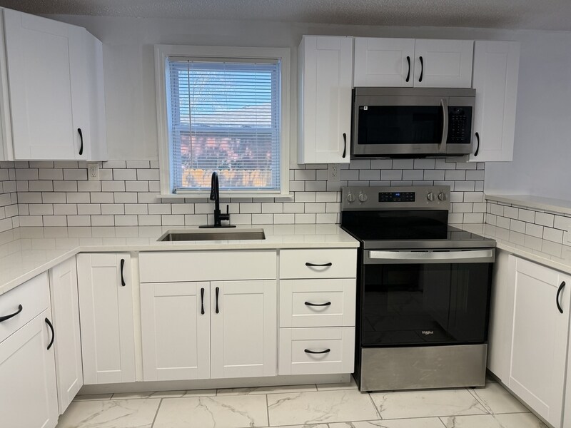 Charming 2-bedroom, 1-bath home featuring a renovated interior and thoughtful modern upgrades throughout! The beautifully updated kitchen offers quartz countertops, a stylish backsplash, stainless steel appliances, a stainless steel farmhouse sink, and abundant cabinetry for storage and functionality. Stackable washer and dryer connections are conveniently located within the home for added ease. The bathroom has also been completely renovated with updated finishes and fixtures, creating a clean and contemporary feel. New fixtures throughout the home add a fresh, cohesive touch to every space. Enjoy outdoor living with a relaxing front porch—perfect for morning coffee or unwinding in the evening—as well as a brand new fenced backyard offering privacy and space to enjoy. Enjoy the convenience of a walkthrough video, giving you a chance to explore the home from the comfort of your own space before scheduling your tour. This home blends modern updates with everyday comfort—don't miss the opportunity to make it yours!