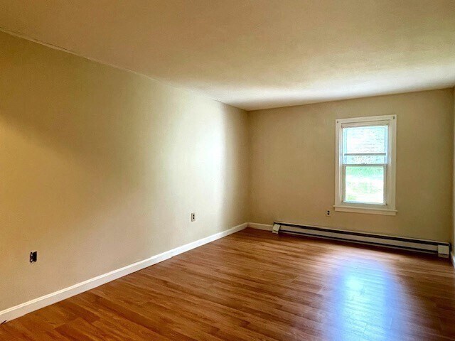 Spacious END UNIT 4RM 2BR 1BA apartment with ground level tiled LR offering 1/2 wall with pine wainscot,cathedral ceiling/ceiling fan,picture window,coat/utility closet. Step up a few oak stair treads to be lead into the eat in cabinet packed kitchen. Appliances include electric stove & refrigerator. Full bath includes washer/dryer hookups. Tenant to supply their own washer/dryer appliance. Both bedrooms have laminate flooring and a generous sized closet. 2 Off street parking spaces with designated quest parking too. Walk to Lickity Splitz~Lake Dennison is down the road! Close to Rts 140,202 and minutes to the NH line. Available now! No smoking No pet policy. 1st & last required when qualified application is accepted. MLS# 73441685