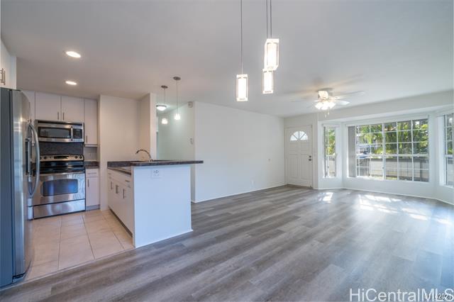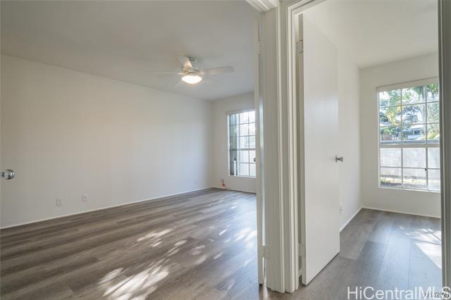 Spacious 2 bedroom, 2 bath, 2 parking ground floor corner unit at Crosspointe. This unit has a large, easy to maintain courtyard, and is conveniently located close to the main entry gate. 2 assigned open parking stalls are situated in front of the unit. Building amenities include 24-hour secured gated entry, swimming pool, hot tub, workout room and BBQ area. Excellent location with easy freeway access. Minutes from Fort Shafter, Joint base Hickam/Pearl Harbor, and the Honolulu International airport. Currently tenant occupied; available for showing on April 1st. Sorry, no pets allowed. KEY FEATURES: Property Type: Townhouse Interior Area: 874sf Bedrooms: 2 Bathrooms: 2 Parking: 2 assigned open stalls UTILITIES Water/sewer, Basic cable included. Tenant pays for Electricity, internet and premium cable channels. PROPERTY FEATURES: 3 Window AC Units Range/Oven Refrigerator Microwave/Hood Disposal Washer and Dryer Counter Tops: Laminate Flooring Type: Vinyl plank/Ceramic Tile BUILDING FEATURES: 24- hour Secured Entry Resident Manager Security Guest Parking Pool BBQ Area Hot Tub Exercise Room LEASE TERMS: Non Smoking No Pets