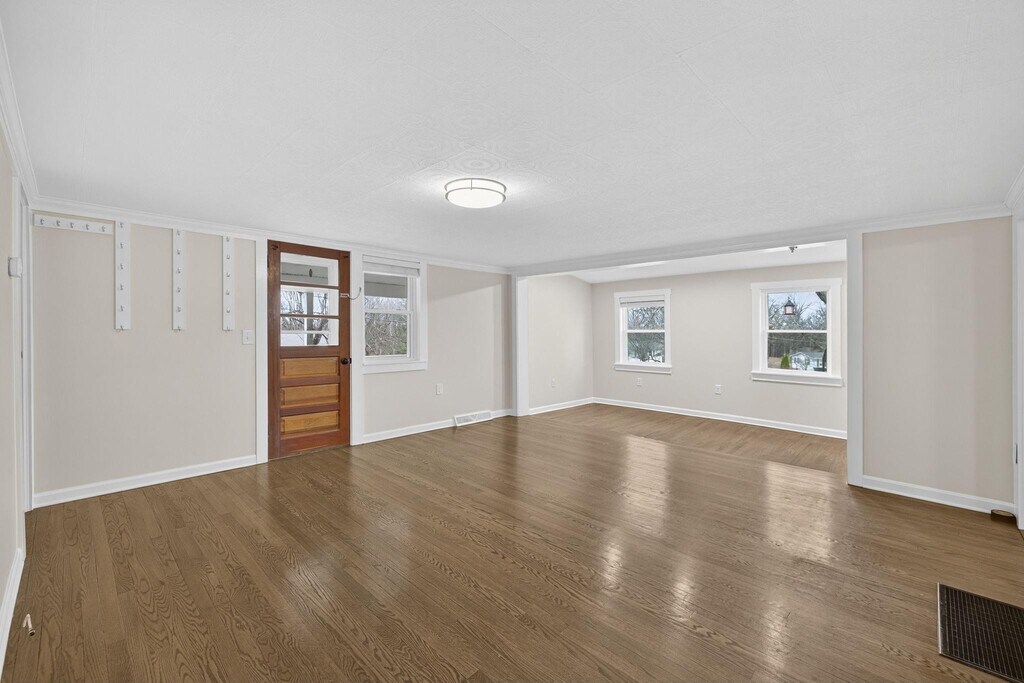 Renovated Farmhouse for Rent West of Winchester! This nicely updated and well-maintained 3-bedroom, 2-bath farmhouse features a main-level primary suite, a welcoming white kitchen with stainless steel appliances and new granite countertops, and an open main-level layout with a spacious living room, dining area, second full bath, and a dedicated office/study with space for a mudroom. Set on one acre, the property offers a large yard, mature trees, a wide front porch, and ample parking. Tenants may use the large garage and one storage shed; the owner will retain use of the second shed. Yard maintenance can be added for a small additional fee. Tenant is responsible for snow removal. Washer/dryer hookups are located in the basement (appliances not included). No pets permitted. Available for immediate occupancy. Please complete the Rental Application at